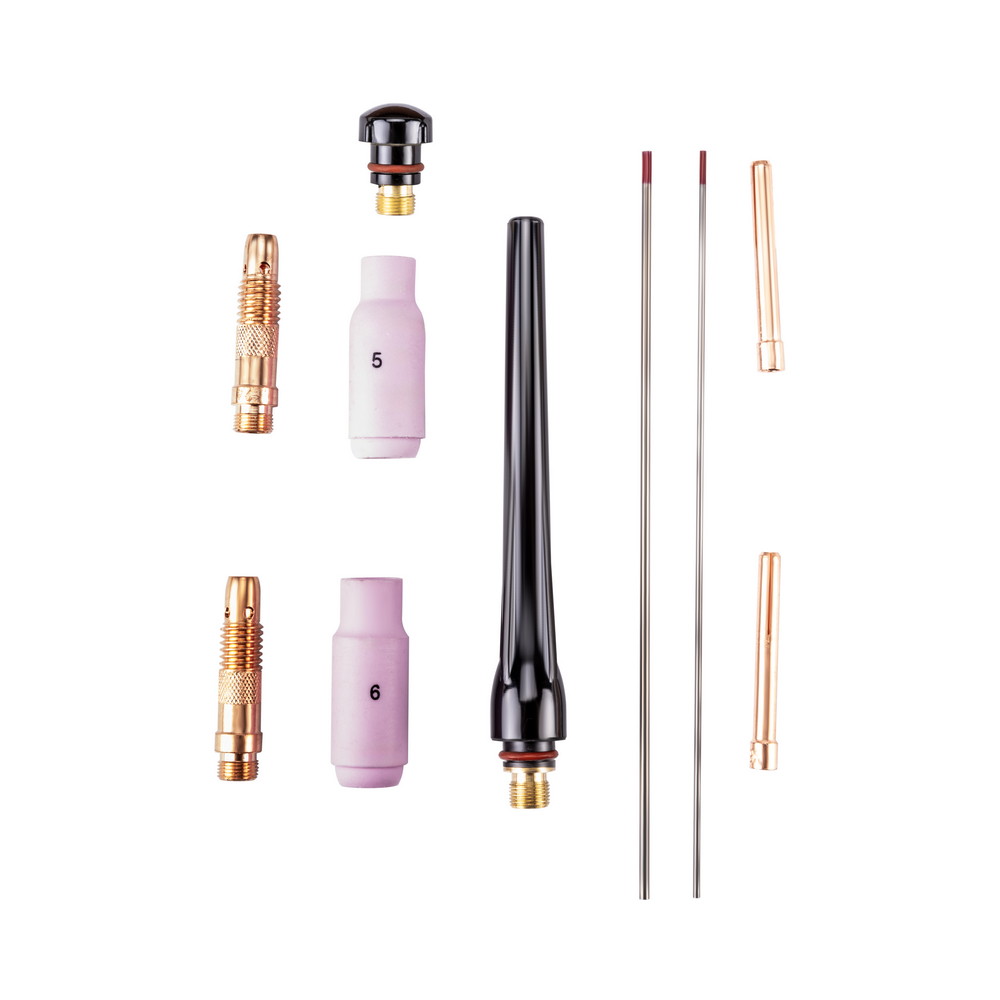 Сварочная горелка SAGGIO TIG-26 FLEX предназначена для аргонодуговой сварки вольфрамовыми электродами при выполнении различных видов сварочных работ. Удобная рукоятка с кнопкой управления сварочным процессом и гибкая головка горелки FLEX обеспечивают комфорт во время работы. А дополнительный кабель подключения 5 pin увеличивает модельный ряд совместимых сварочных аппаратов.ГОРЕЛКА FLEX: Гибкая головка горелки FLEX удобна при сварке металлических конструкций в труднодоступных местах и в ограниченном пространстве.ЭРГОНОМИЧНОСТЬ: Эргономичная рукоятка горелки хорошо лежит в руке, а съёмная кнопка управления сваркой добавляет функциональности, удобства во время сварочного процесса и простоты обслуживания на месте проведения работ.ПРЕИМУЩЕСТВА:Гибкая головка горелкиУправление кнопкой на рукояткеВоздушное охлаждениеКабель управления 5 pinСъёмная кнопка управления – простота обслуживания и ремонтаХорошая комплектация – всё что нужно для начала сварочных работКОМПЛЕКТАЦИЯ: Горелка SAGGIO TIG-26 FLEX 4М (35мм2), разъём 5-pin - 1 шт.; Сопло №5 8 мм керамическое - 1 шт.; Сопло №6 10 мм керамическое - 1 шт.; Колпачок с уплотнительным кольцом длинный - 1 шт.; Колпачок с уплотнительным кольцом короткий - 1 шт.; Цанга 1,6 мм - 1 шт.; Цанга 2,4 мм - 1 шт.; Корпус цанги 1,6 мм - 1 шт.; Корпус цанги 2,4 мм - 1 шт.; Электрод вольфрамовый WT20 175х1,6 мм - 1 шт.; Электрод вольфрамовый WT20 175х2,4 мм - 1 шт.*Производитель оставляет за собой право менять комплектацию оборудования.