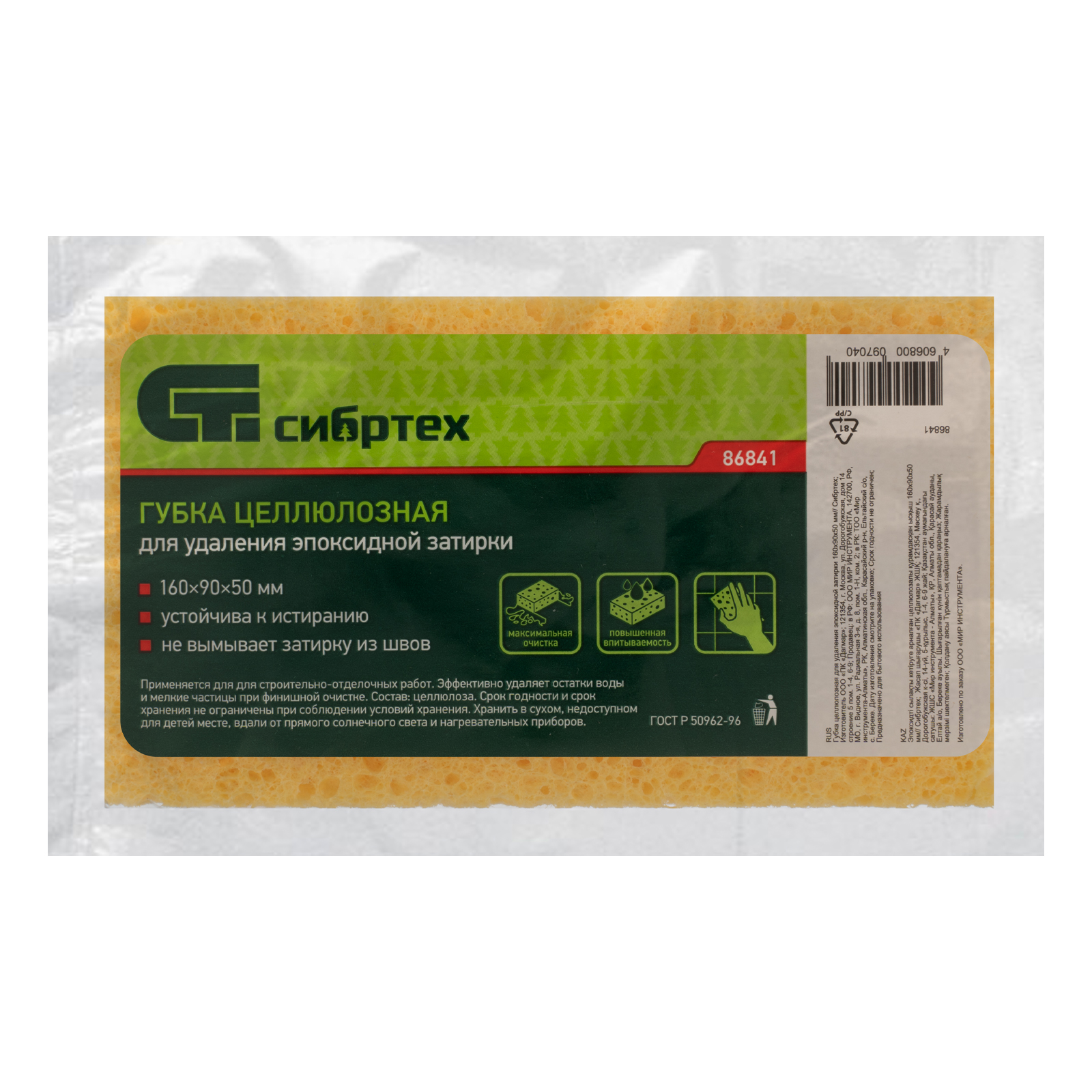 Губка целлюлозная для удаления эпоксидной затирки 160x90x50 мм Сибртех в Краснодаре