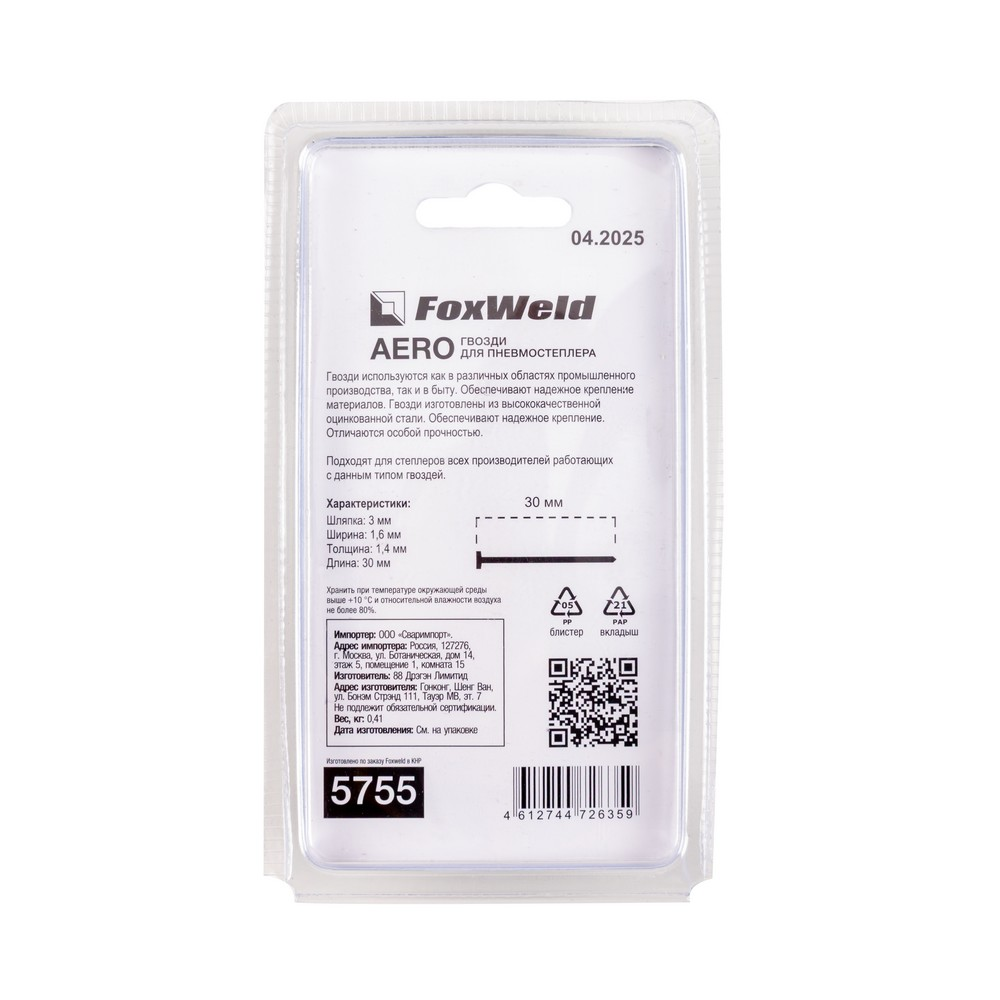 Гвозди для пневмостеплера тип 16GA T30, 1,4 х 30 мм 1000 шт. AERO