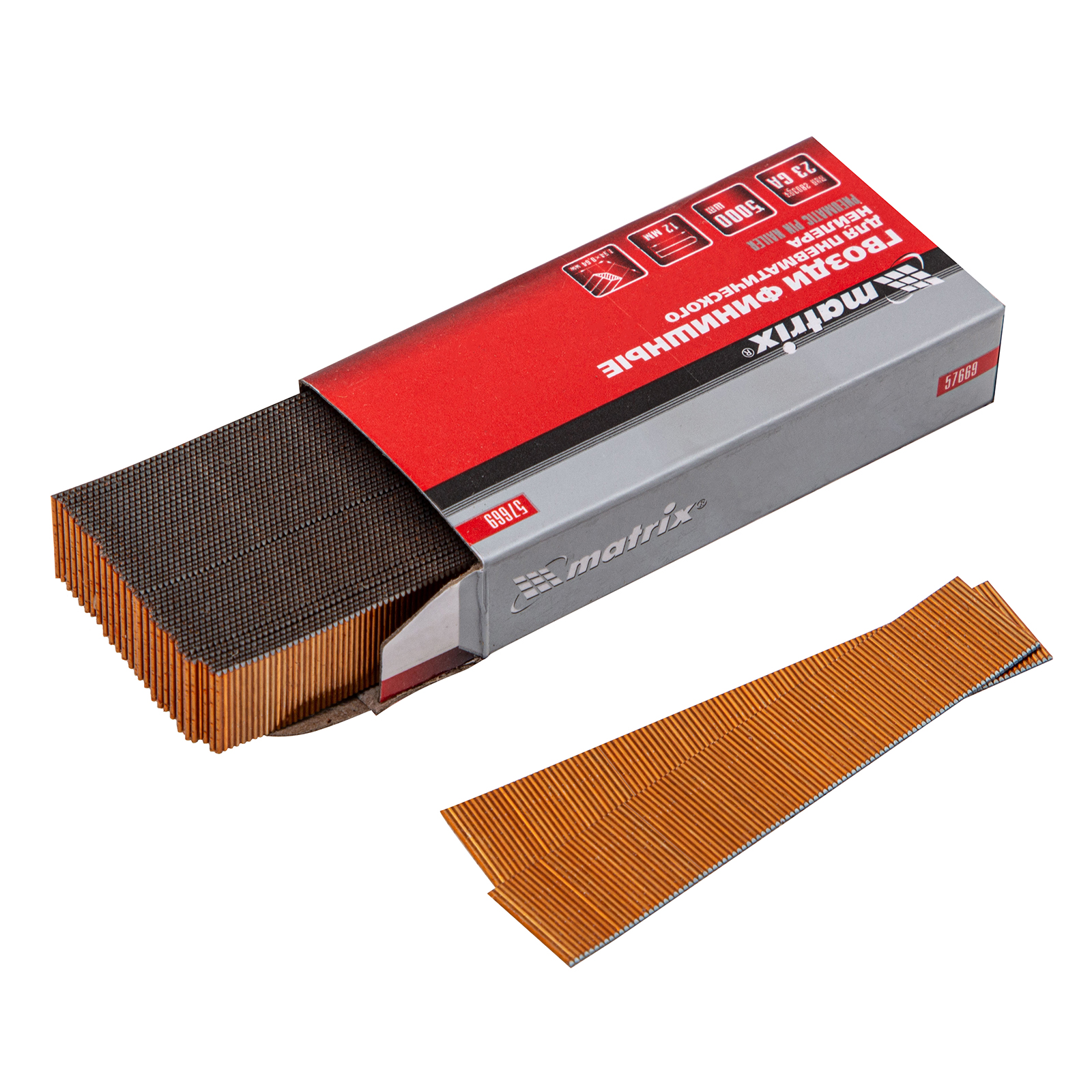 Гвозди финишные (шпильки) Matrix 23GA 57669 диаметром 0,64 мм и длиной 12 мм, 5000 шт., подойдут для работы с пневматическим нейлером любой торговой марки. Используются для быстрого и точного скрепления тонких деревянных материалов и конструирования декоративных элементов.