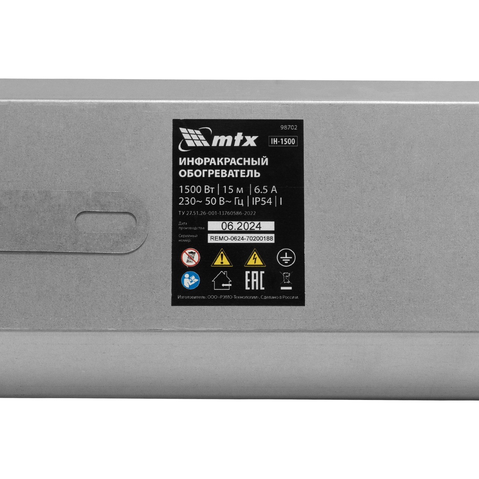 Инфракрасный обогреватель IH- 1500, 230В, 1500 Вт MTX в Краснодаре
