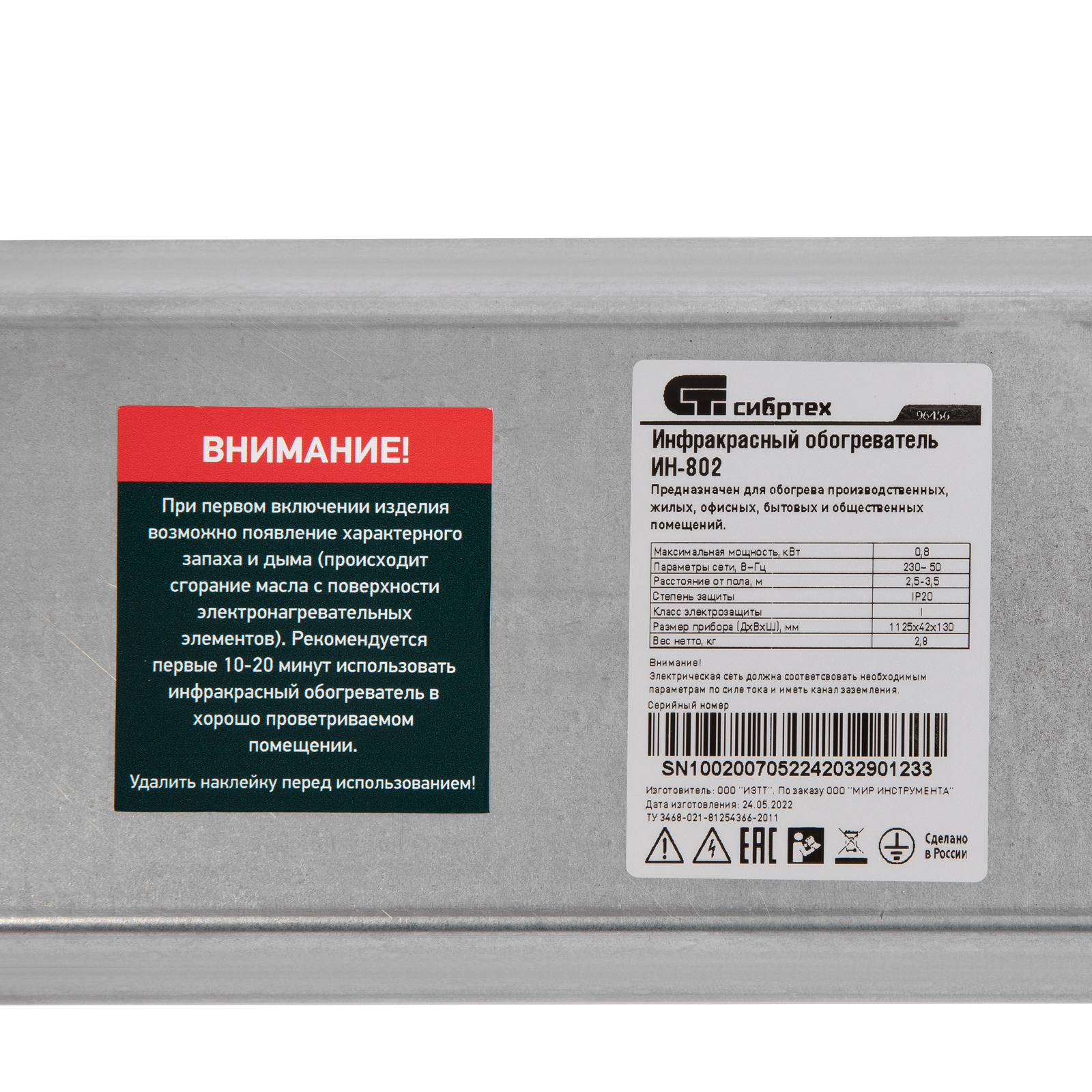 Инфракрасный обогреватель ИН- 802, 230В, 800 Вт Сибртех в Краснодаре