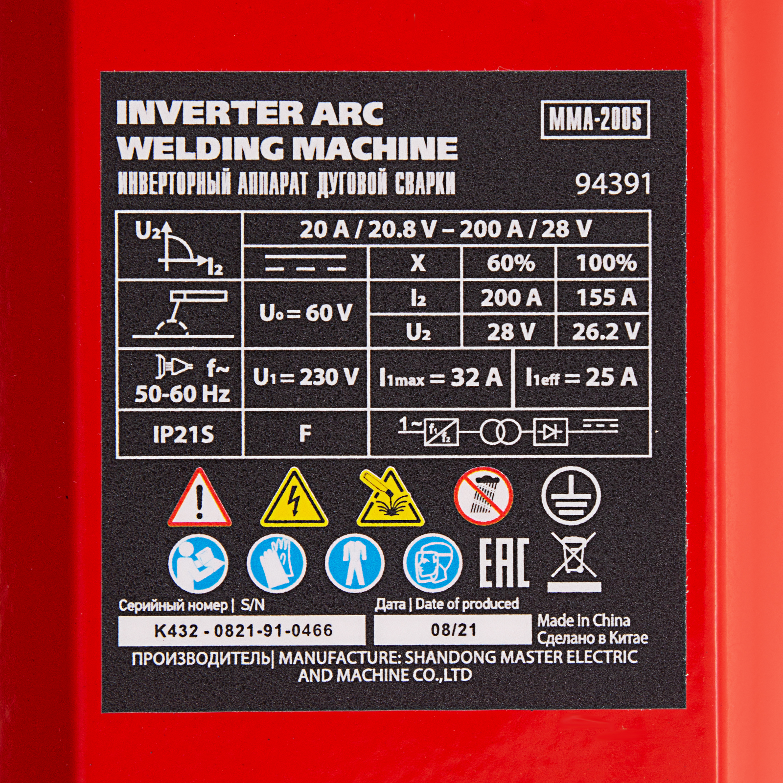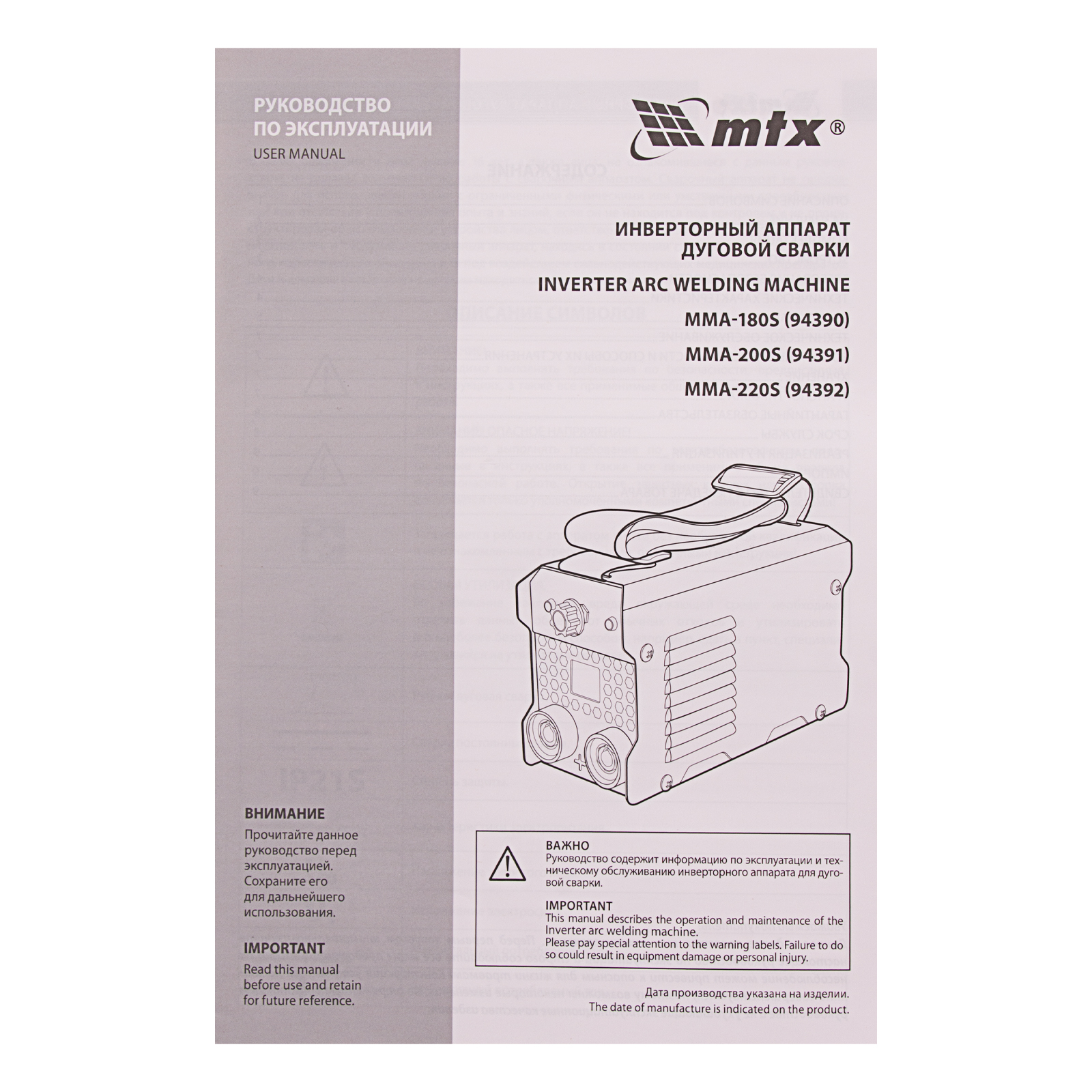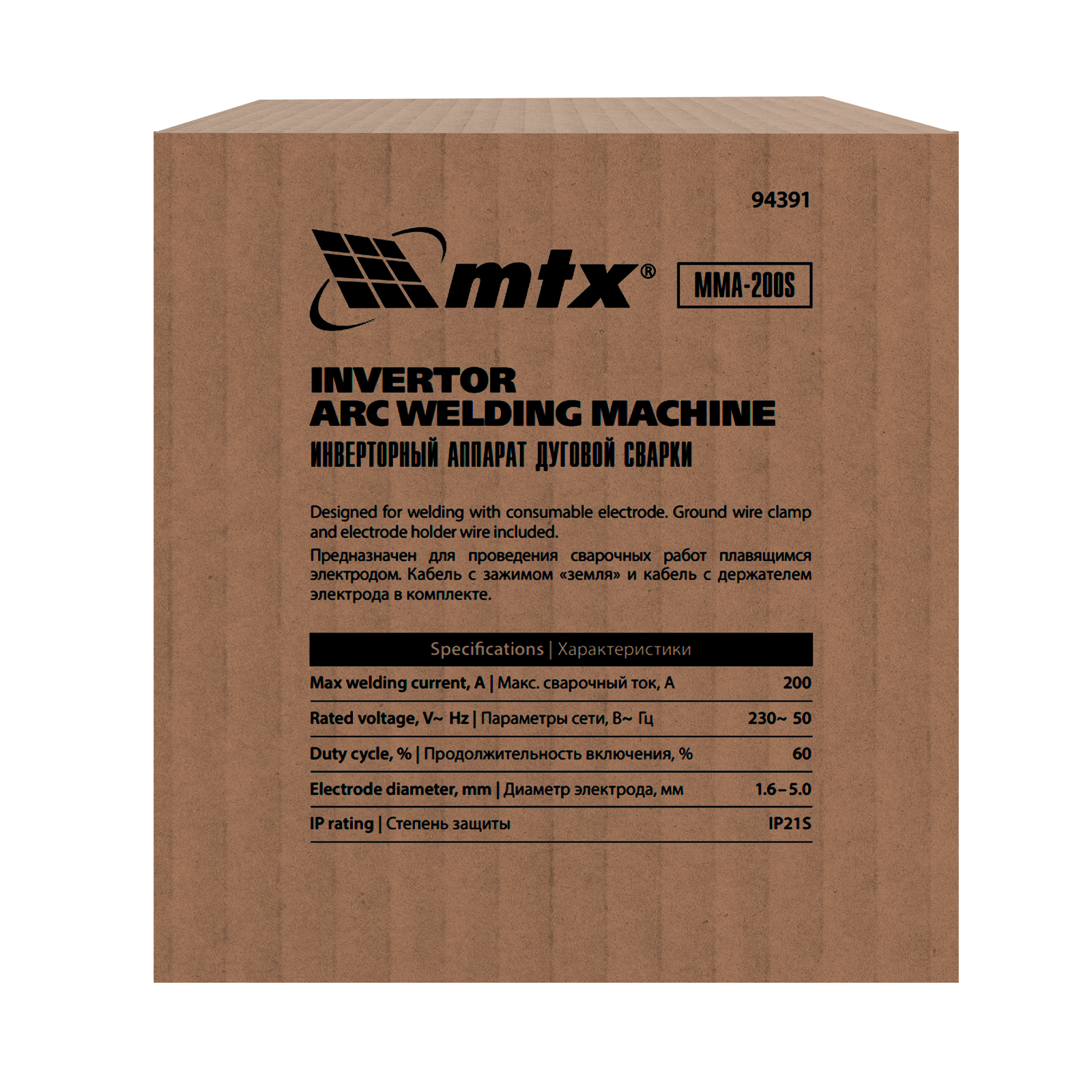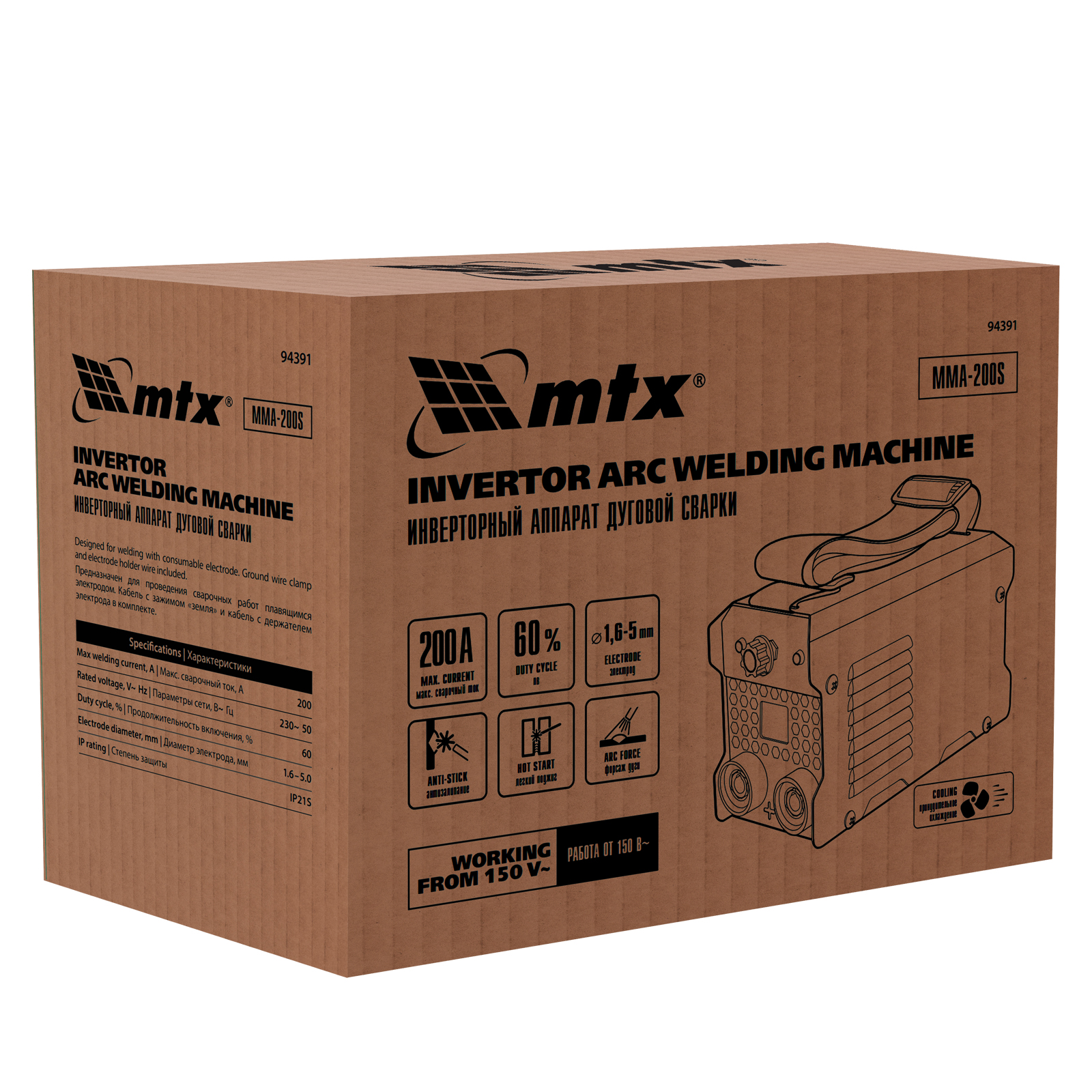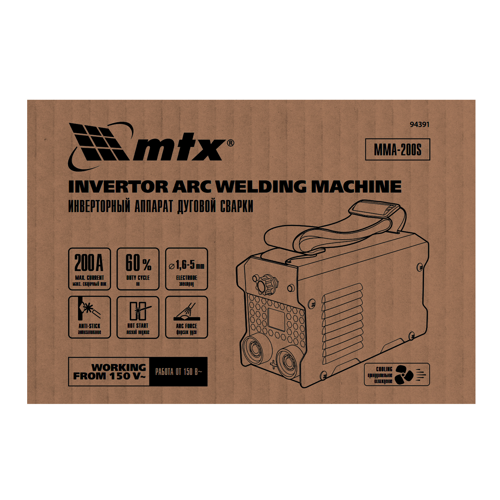 Инверторный аппарат дуговой сварки MMA-200S, 200 А, ПВ60%, диаметр электрода 1,6-5 мм MTX в Краснодаре