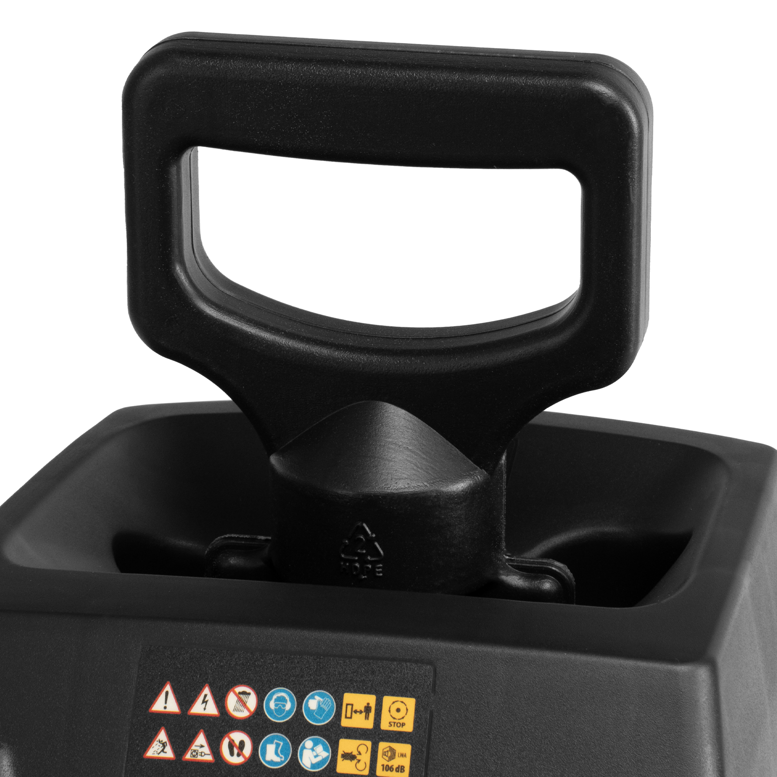 - Маневренность — для удобного перемещения по участку измельчитель оснащен колесами и ручкой.