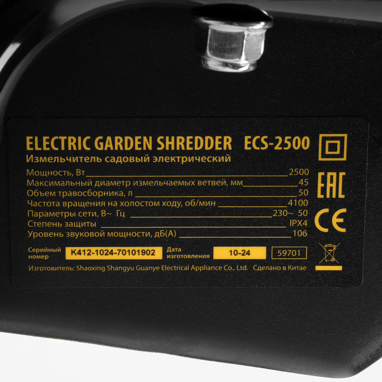 Измельчитель садовый электрический ECS-2500, 2500 Вт, 45 мм Denzel в Краснодаре