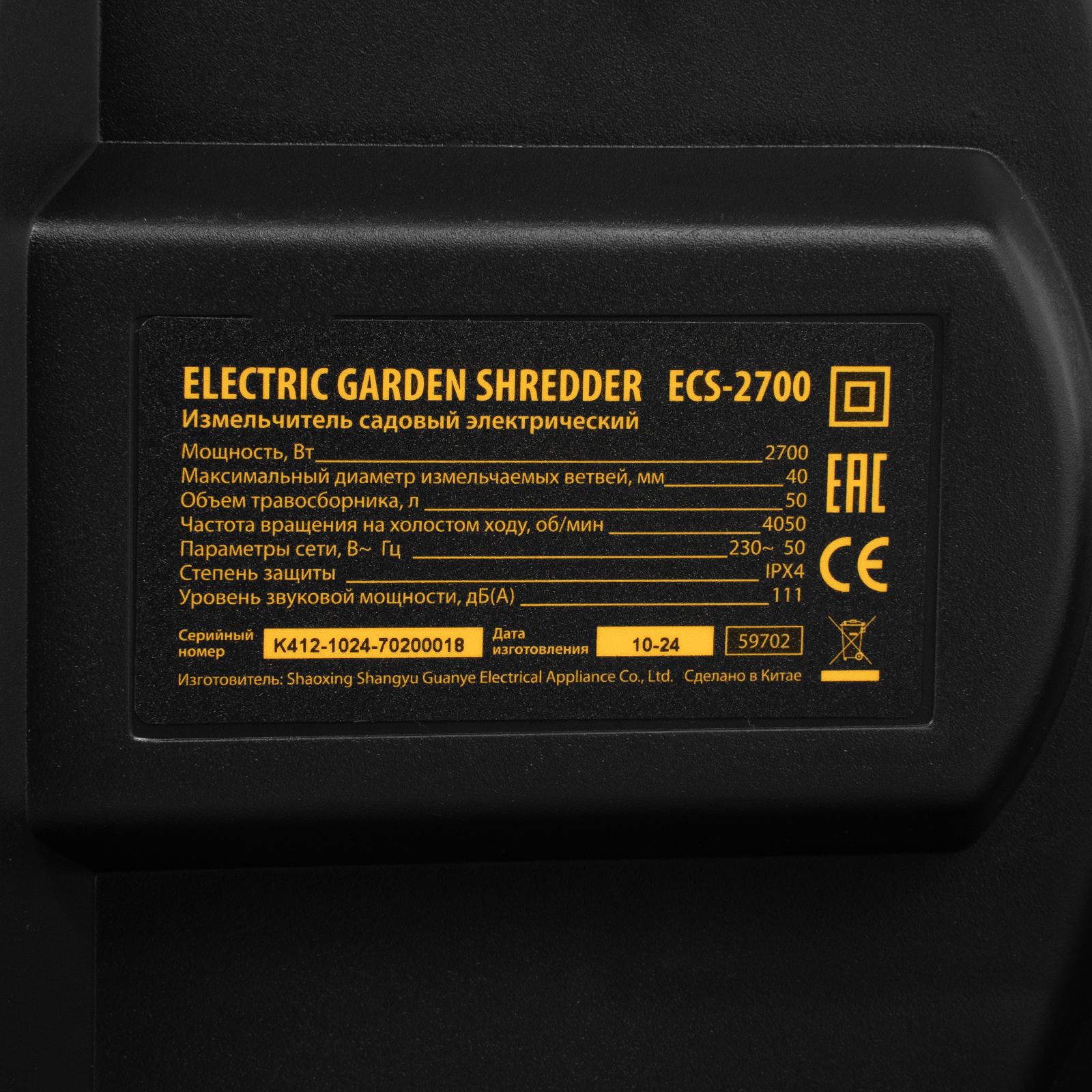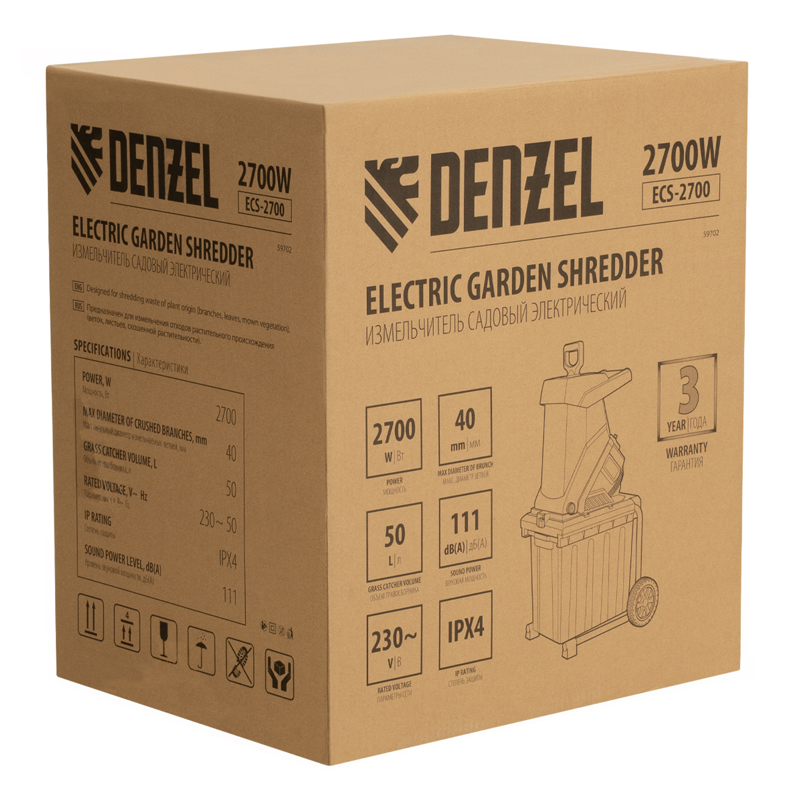 Измельчитель садовый электрический ECS-2700, 2700 Вт, 40 мм Denzel в Краснодаре