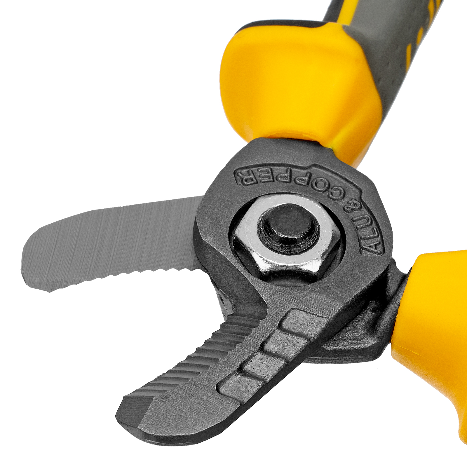 - Прочность и износостойкость — кабелерез изготовлен из стали С60, рабочие кромки твердостью 62 HRC долго сохраняют режущие свойства.