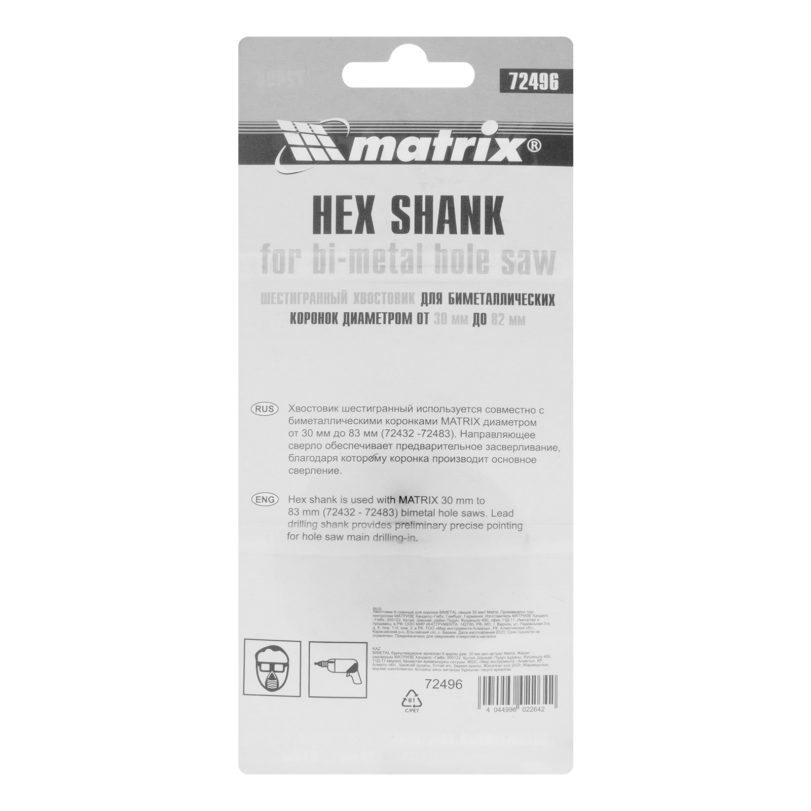 Хвостовик шестигранный для коронок Bimetal свыше 30 мм Matrix в Краснодаре