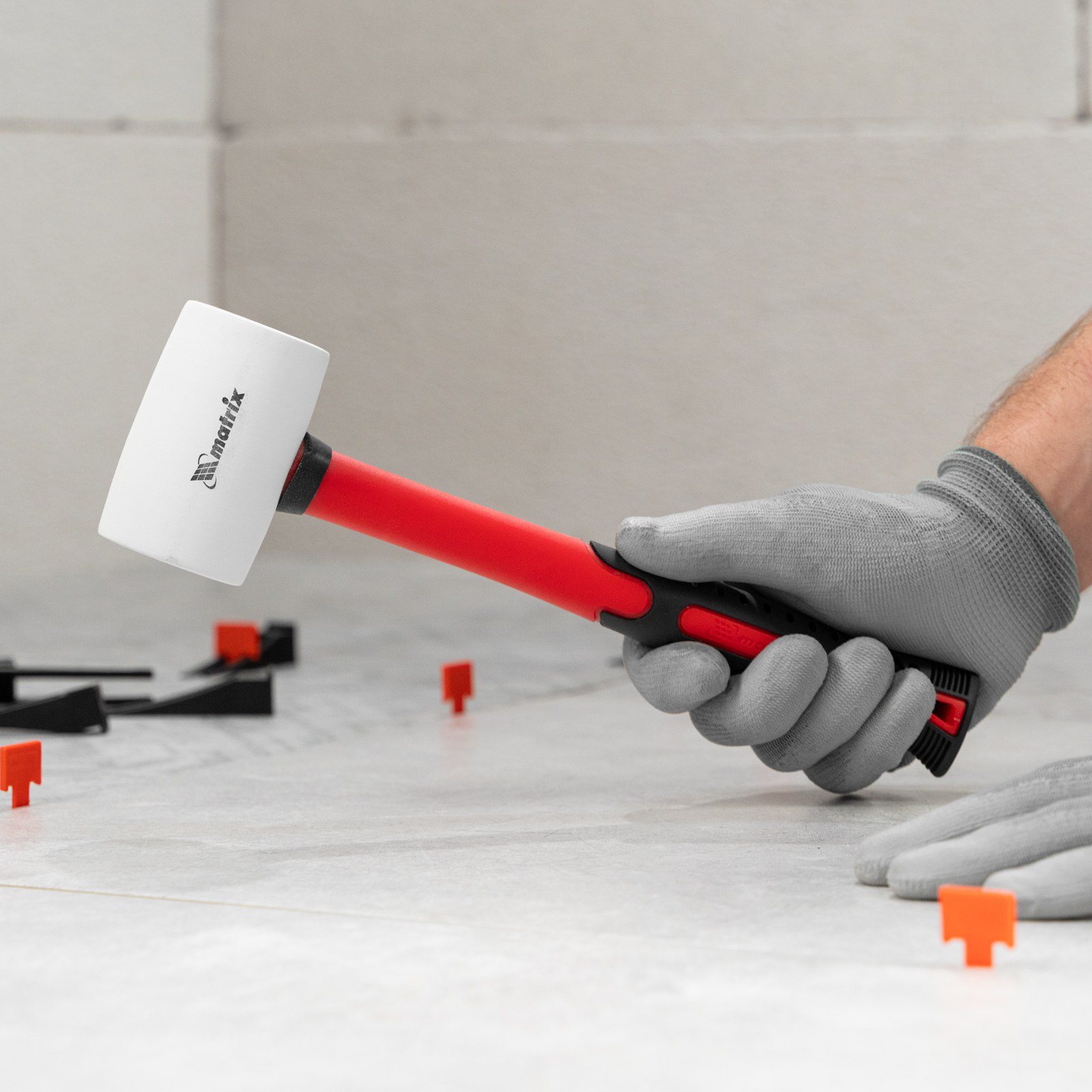 - Работа со светлыми и чувствительными к давлению материалами — боек из белой резины не оставляет следов и обладает высокими амортизирующими свойствами.