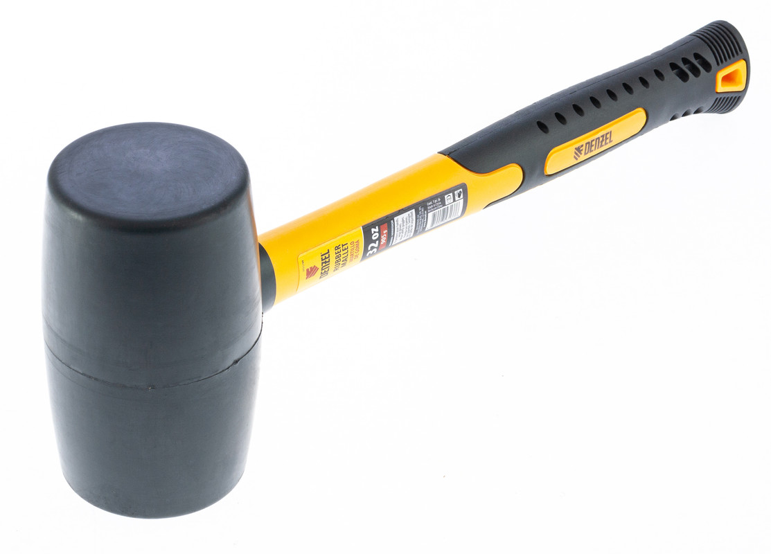 Киянка резиновая, 32 oz, черная резина, фибергласовая рукоятка Denzel в Краснодаре