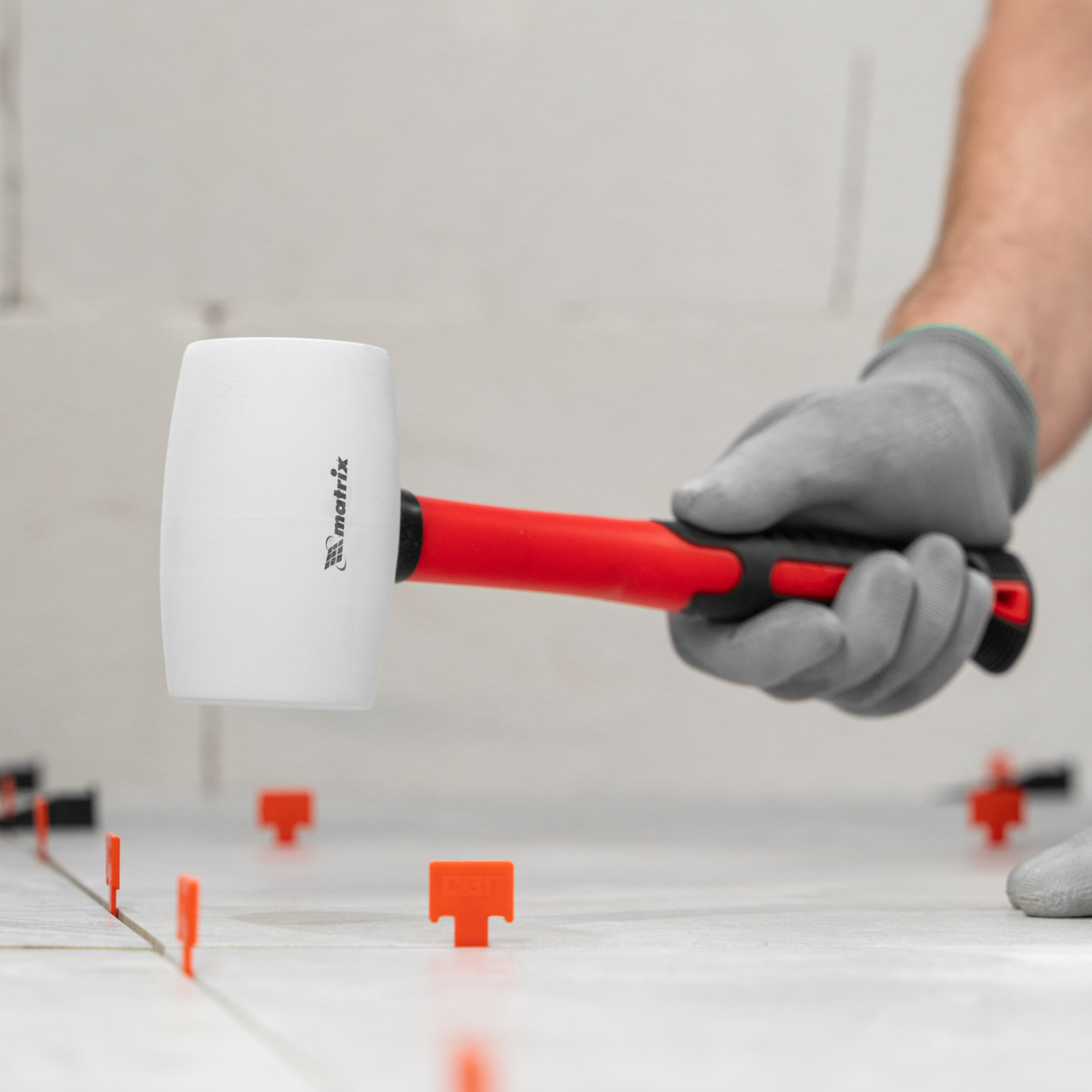 - Работа со светлыми и чувствительными к давлению материалами — боек из белой резины не оставляет следов и обладает высокими амортизирующими свойствами.