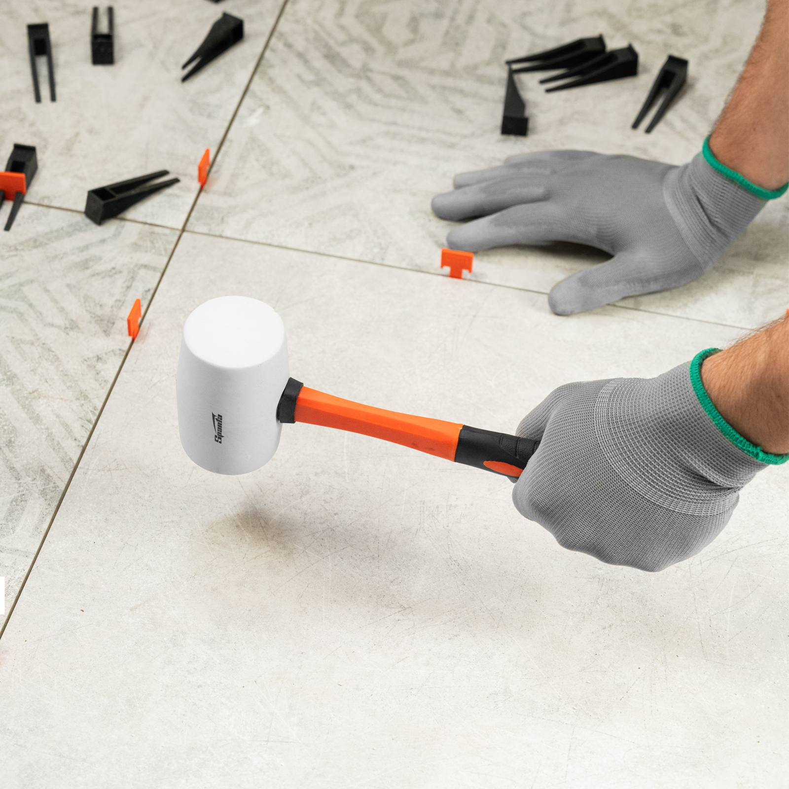 - Комфортное использование — обрезиненная рукоятка обеспечивает надежный хват и не выскальзывает из ладони, а небольшой вес киянки позволяет долго работать без усталости.