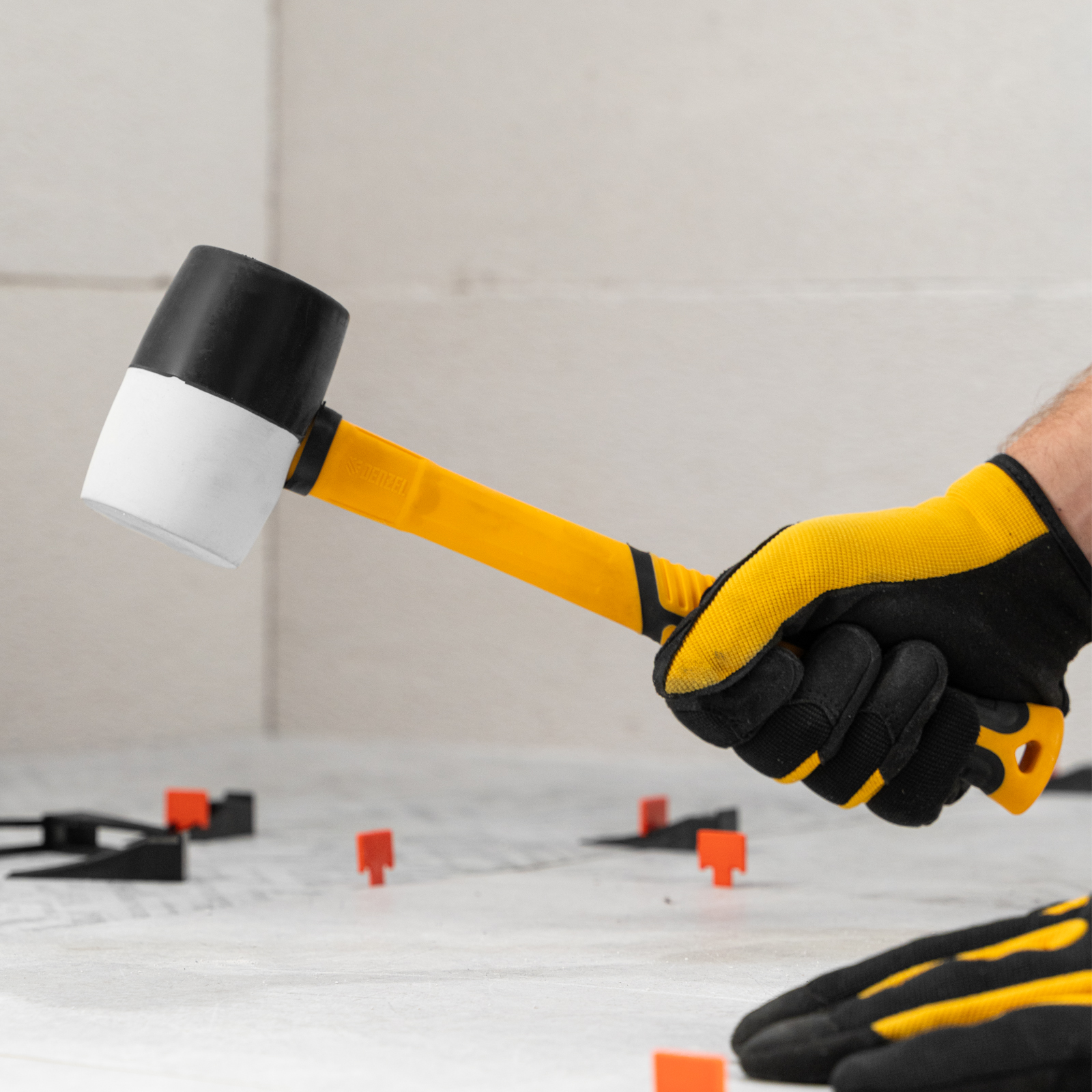 Киянка резиновая, 450 г, черно-белая, фибергласовая рукоятка c TPR покрытием Denzel в Краснодаре