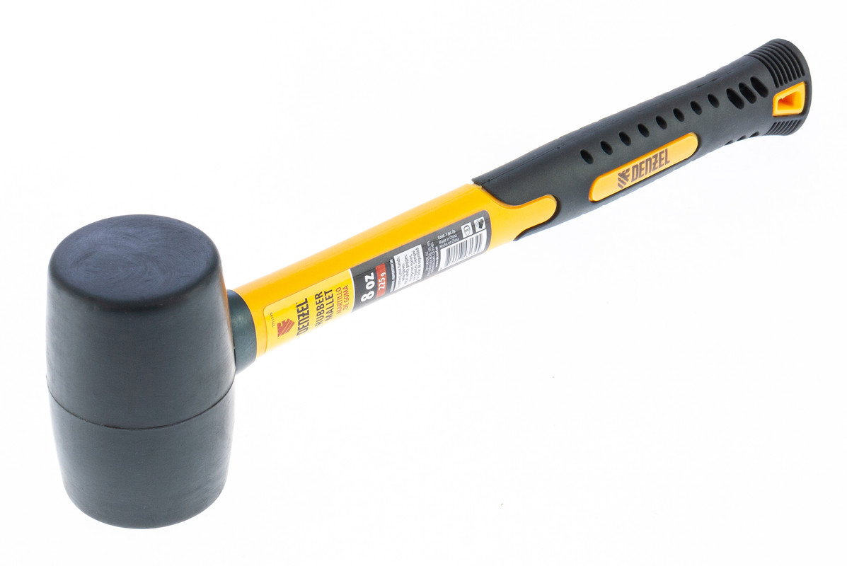 Киянка резиновая, 8 oz, черная резина, фибергласовая рукоятка Denzel в Краснодаре