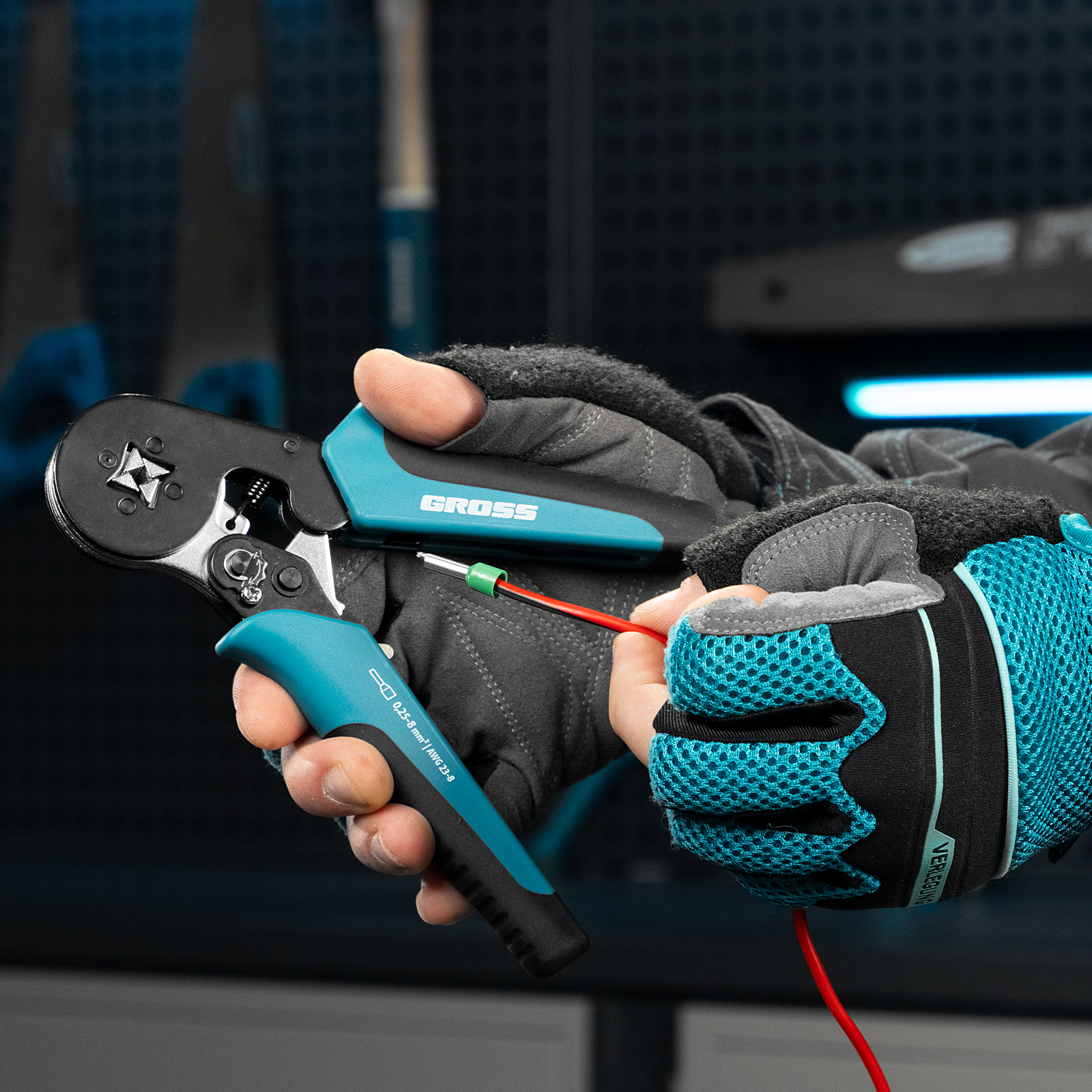 Клещи (пресс-клещи) для обжима наконечников электропроводов с сечением 0.25-8 мм2 Gross в Краснодаре