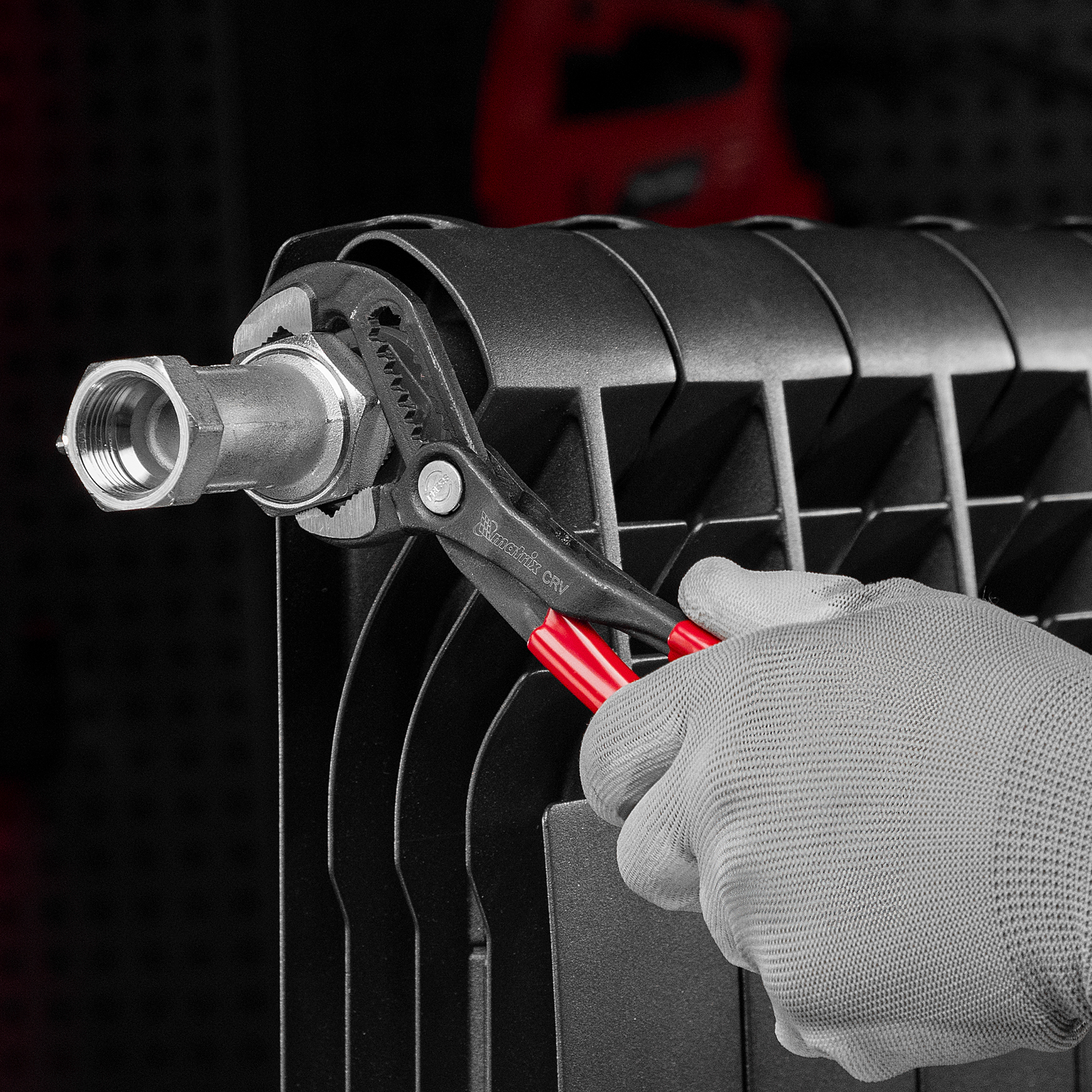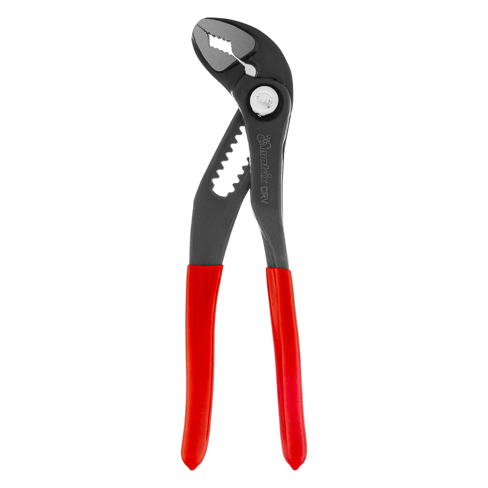 Переставные клещи Matrix 17925 длиной 180 мм, выполненные из хромованадиевой стали, с кнопочным механизмом и обливными рукоятками, используются для проведения монтажных и слесарных работ. Универсальный инструмент заменяет ключи различных размеров и применяется для фиксации заготовок, откручивания гаек, зажима и удержания труб диаметром до 50 мм.