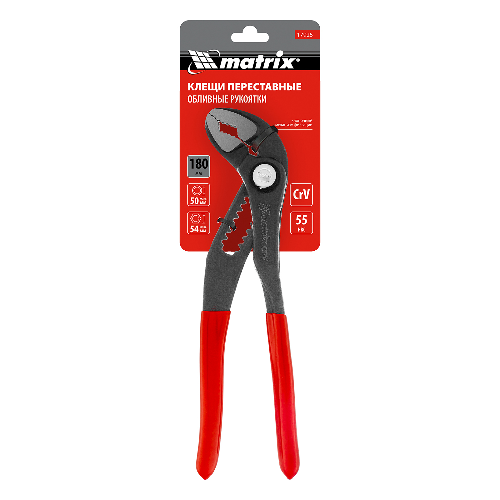 Клещи переставные 180 мм, кнопочный механизм, хром-ванадий, обливные рукоятки Matrix в Краснодаре