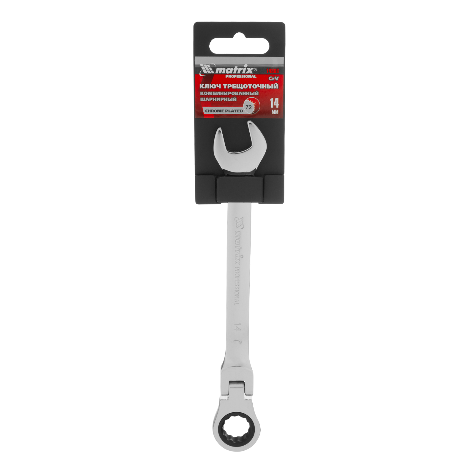 Ключ комбинированный трещоточный, 14 мм, CrV, шарнирный, зеркальный хром Matrix Professional в Краснодаре