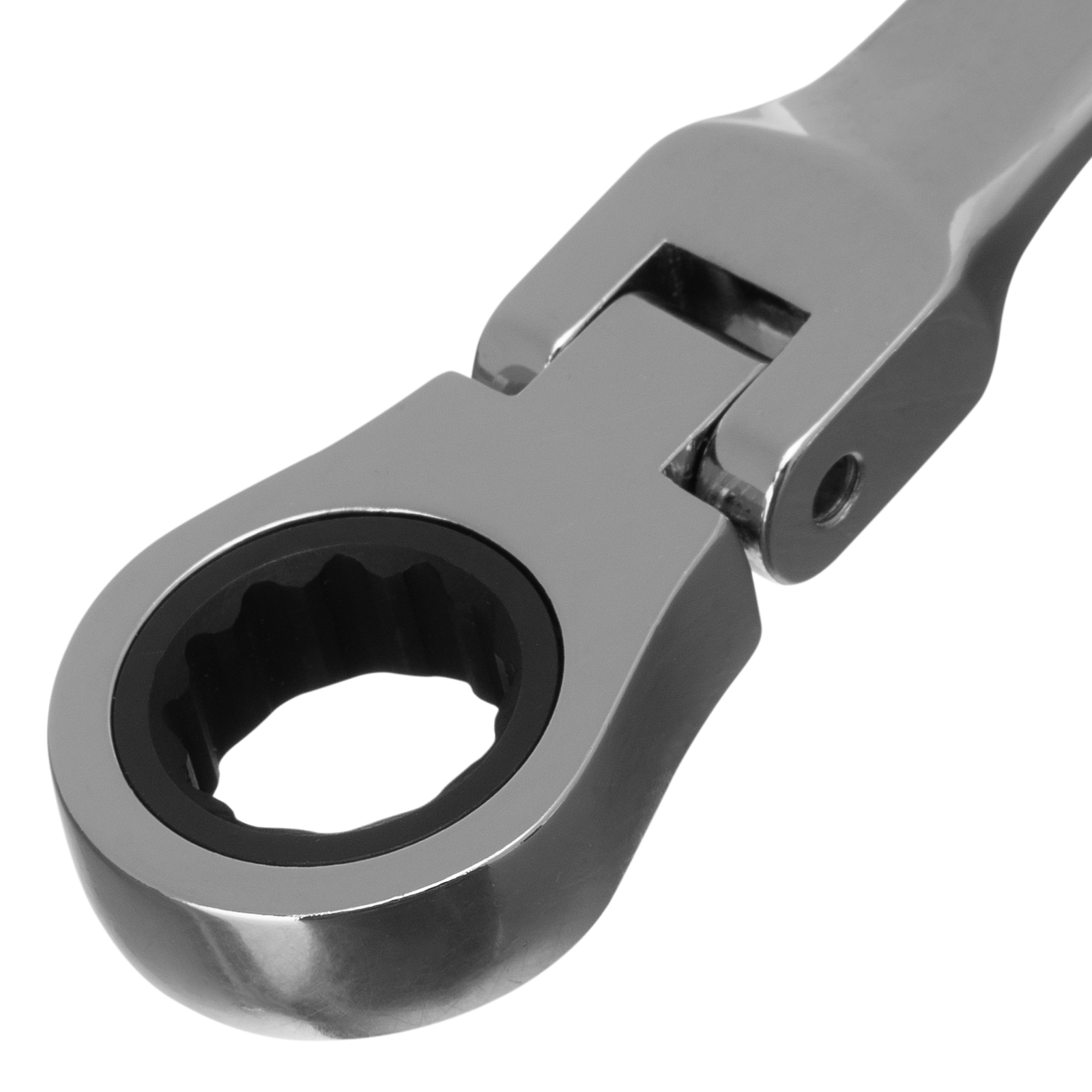- Удобная работа в труднодоступных местах — храповой механизм на 72 зуба обеспечивает плавное вращение (шаг трещотки составляет 5°), а шарнир позволяет поворачивать рабочую часть под углом.