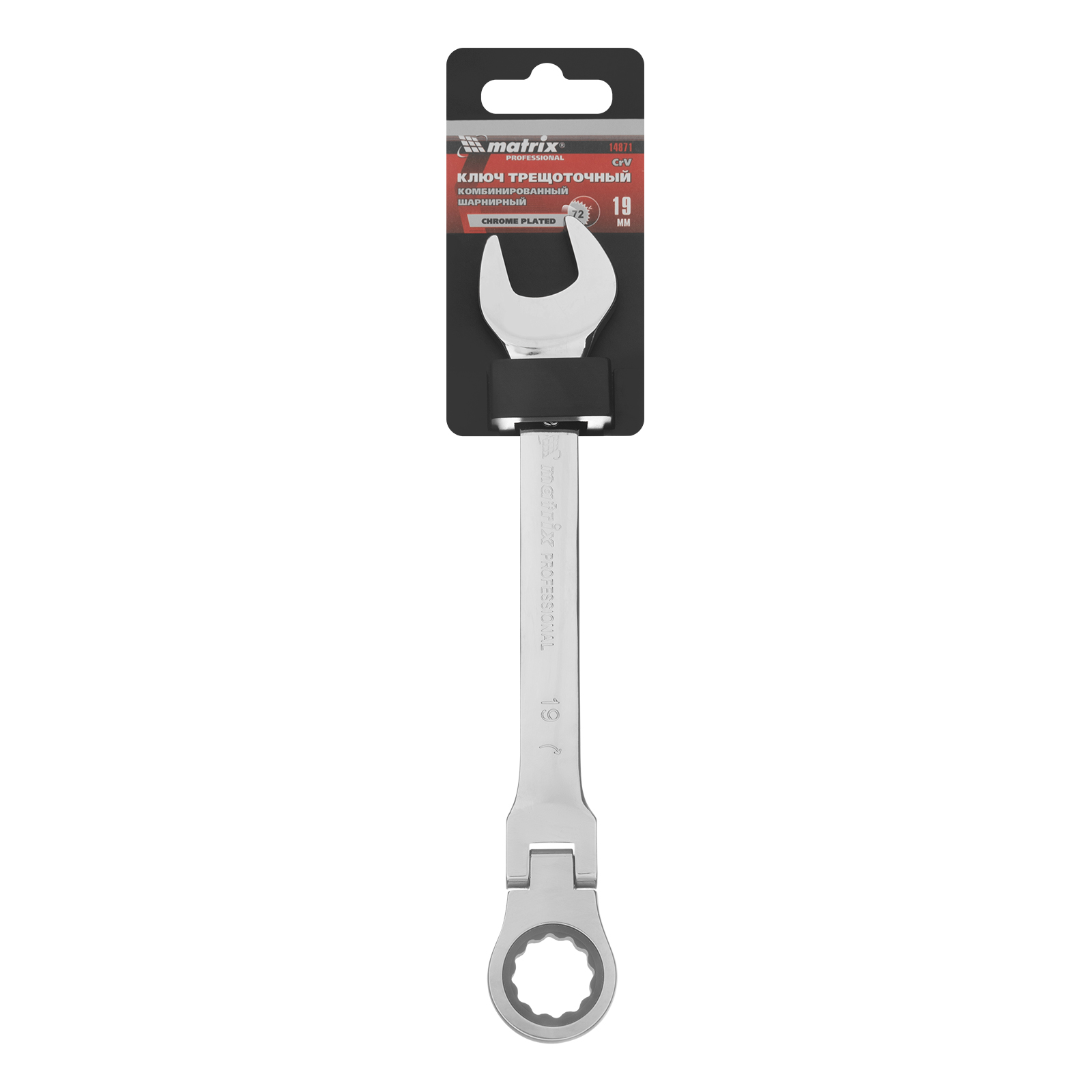 Ключ комбинированный трещоточный, 19 мм, CrV, шарнирный, зеркальный хром Matrix Professional в Краснодаре