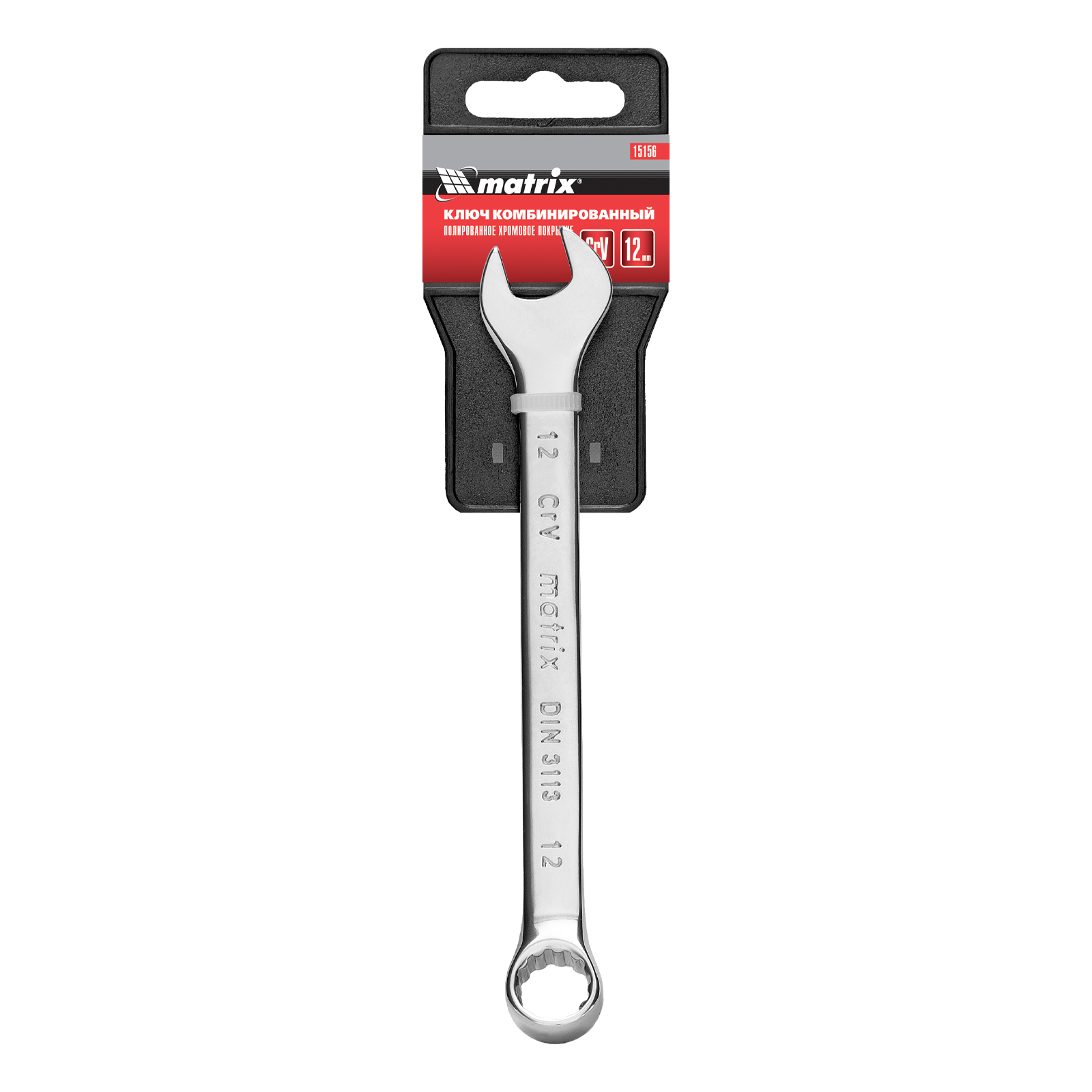 Комбинированный ключ Matrix 15156 размером 12 мм, из стали CrV, с покрытием «полированный хром», пригодится во время ремонтных работ дома или в гараже. С его помощью можно быстро монтировать и демонтировать крепежные элементы. Угол наклона кольцевого зева относительно плоскости инструмента составляет 15°, поэтому ключом удобно работать в труднодоступных местах.
