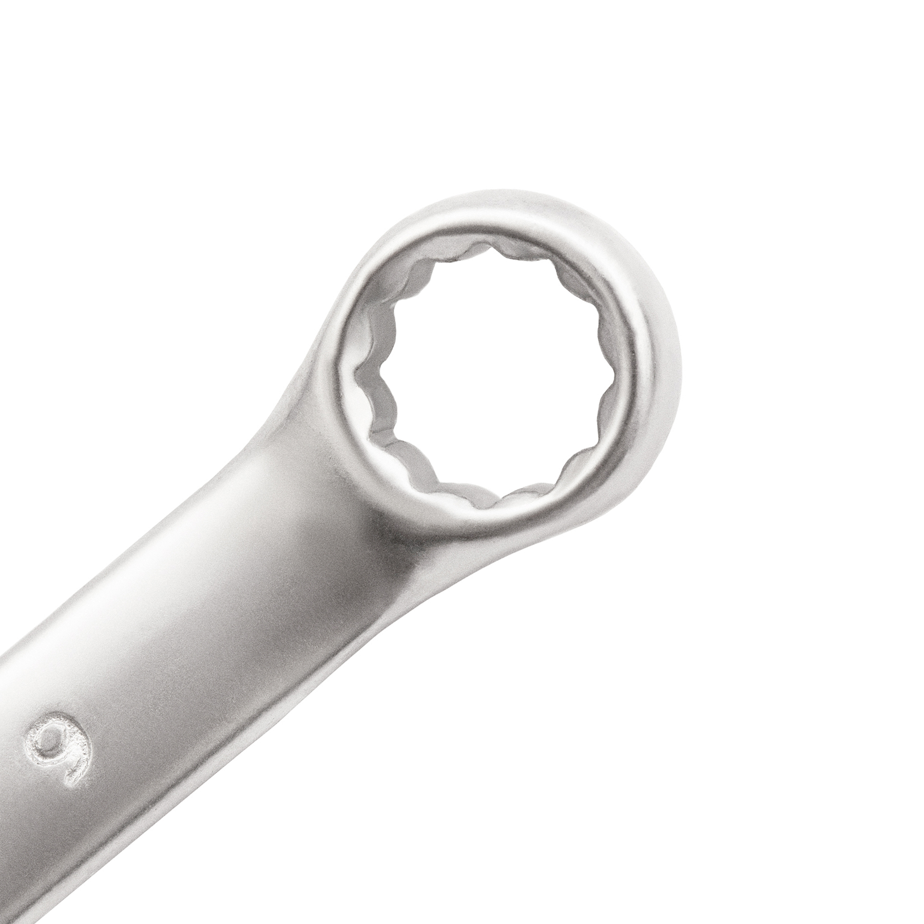 Комбинированный ключ Matrix 15105 размером 9 мм, из стали CrV, с покрытием «матовый хром», пригодится во время ремонтных работ дома или в гараже. С его помощью можно быстро монтировать и демонтировать крепежные элементы. Угол наклона кольцевого зева относительно плоскости инструмента составляет 15°, поэтому ключом удобно работать в труднодоступных местах.