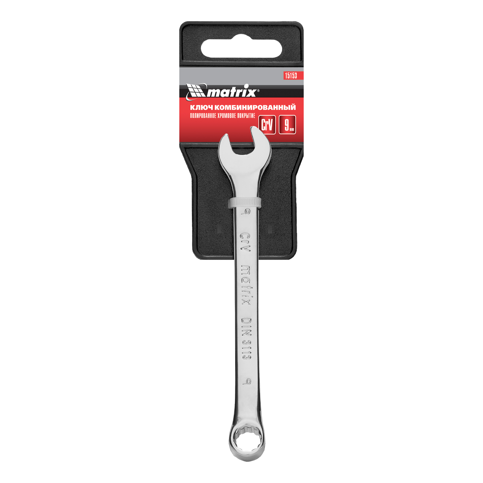 Ключ комбинированный, 9 мм, CrV, полированный хром Matrix в Краснодаре