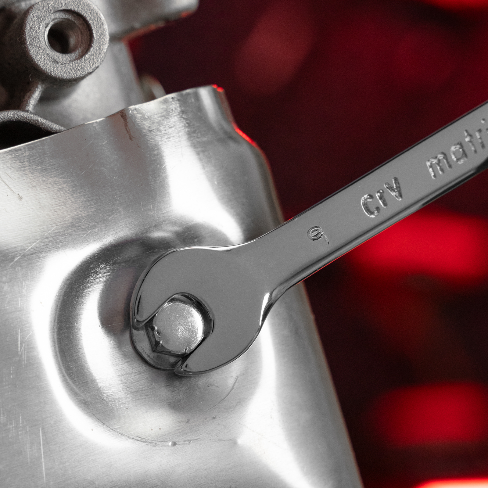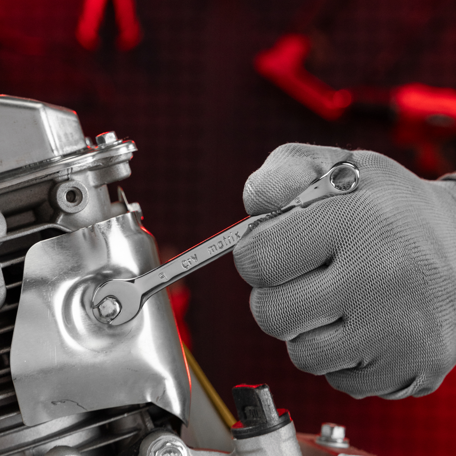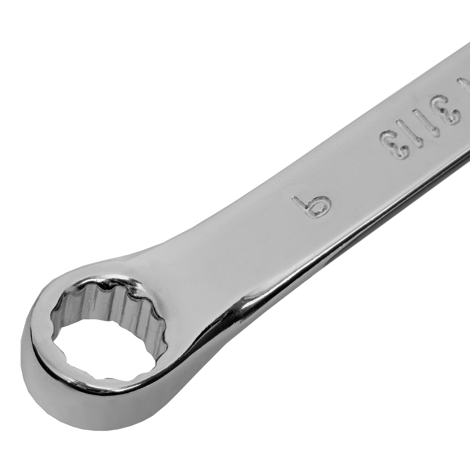 Комбинированный ключ Matrix 15153 размером 9 мм, из стали CrV, с покрытием «полированный хром», пригодится во время ремонтных работ дома или в гараже. С его помощью можно быстро монтировать и демонтировать крепежные элементы. Угол наклона кольцевого зева относительно плоскости инструмента составляет 15°, поэтому ключом удобно работать в труднодоступных местах.