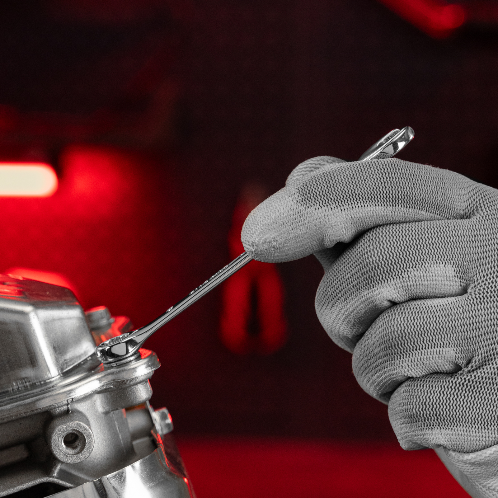 - Аккуратная работа — накидные части с 12-гранным профилем охватывают всю поверхность крепежа, уменьшая риск деформации его граней.