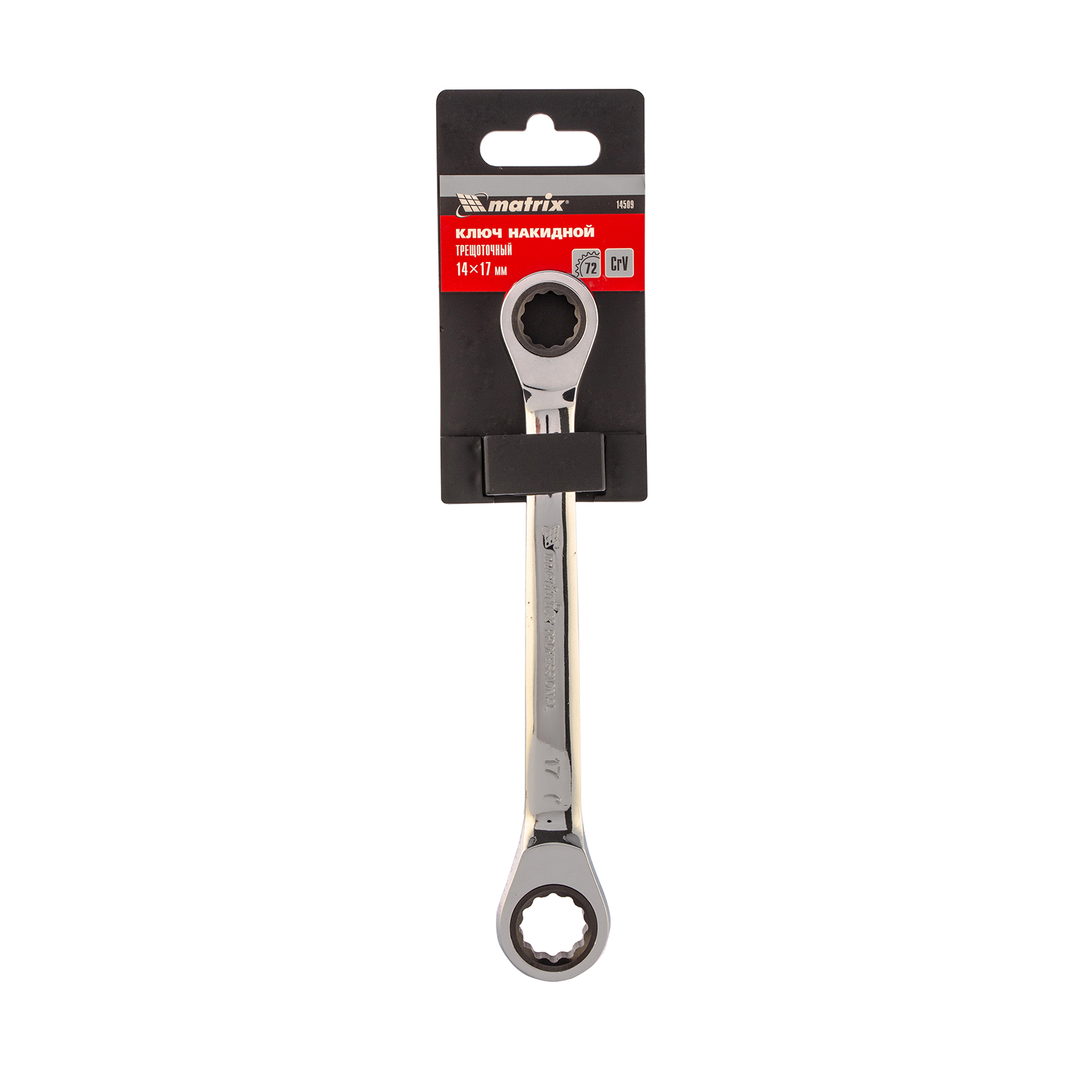 Ключ накидной трещоточный, 14 x 17 мм, CrV, зеркальный хром Matrix в Краснодаре