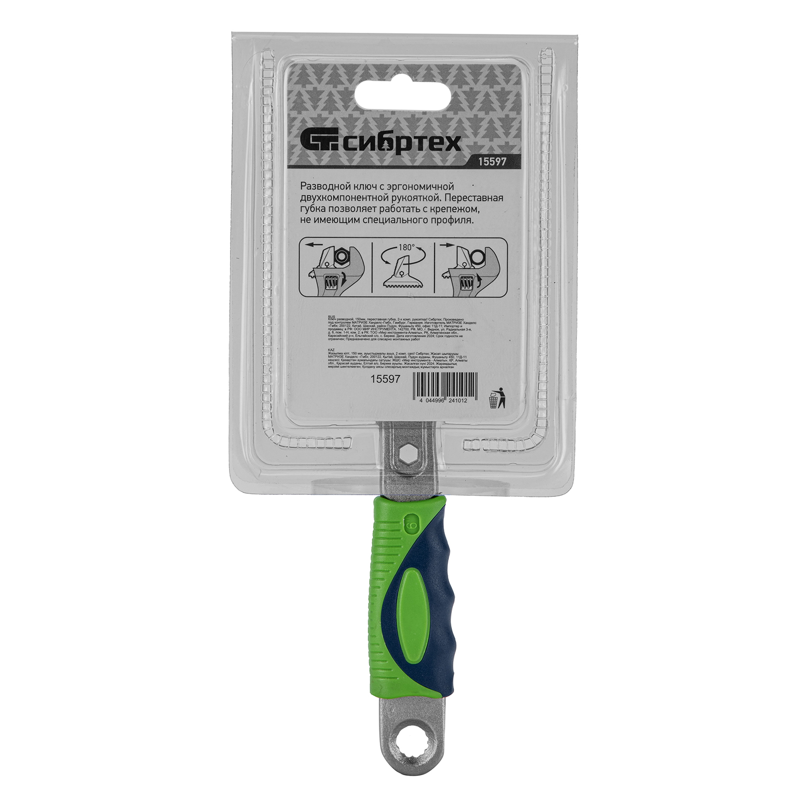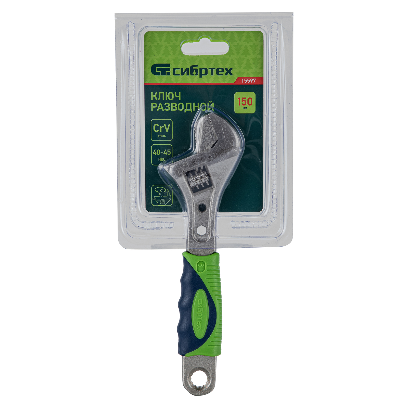 Ключ разводной, 150мм, переставная губка, 2-х комп. рукоятка Сибртех в Краснодаре