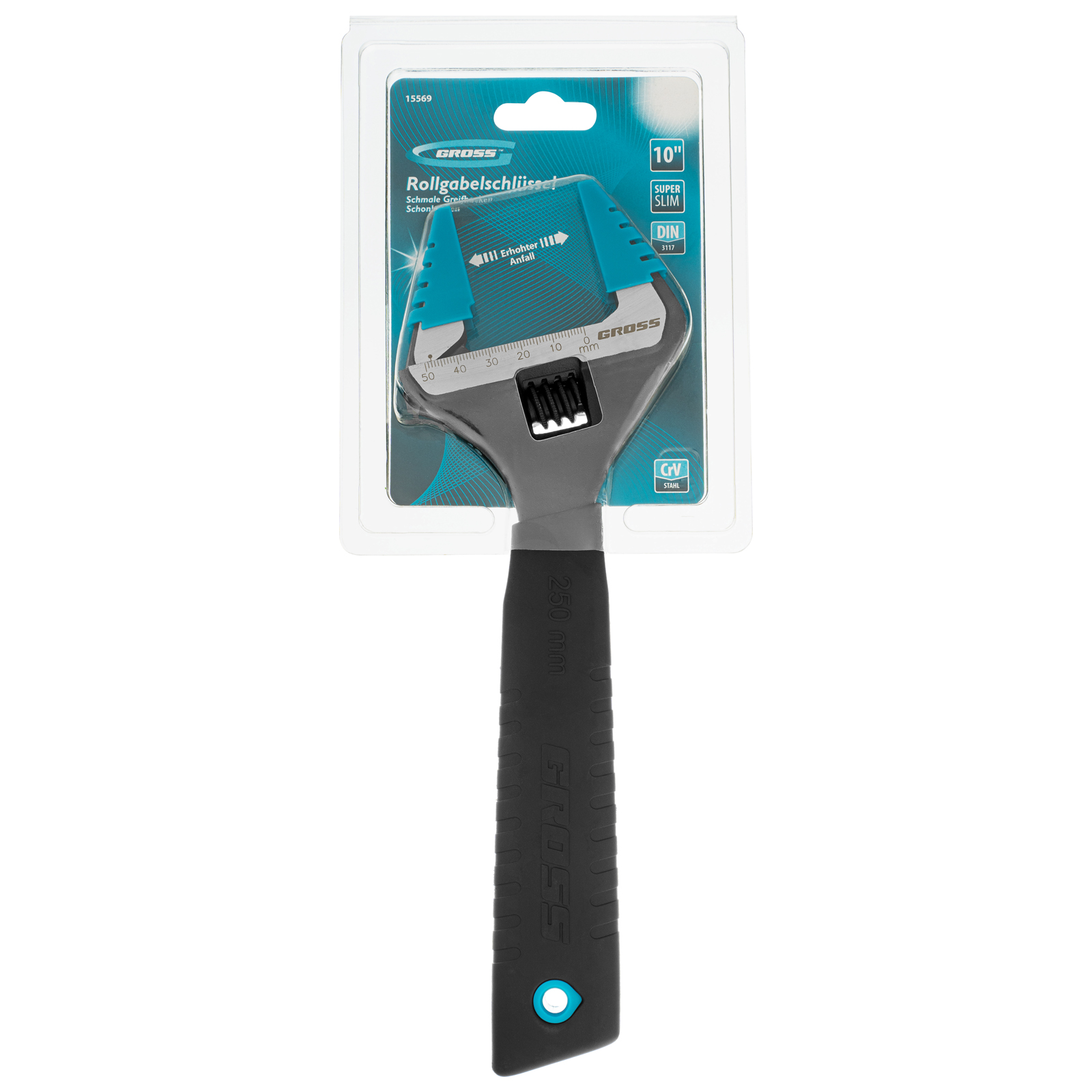 Ключ разводной, 250 мм, CrV, тонкие губки, защитные насадки Gross в Краснодаре