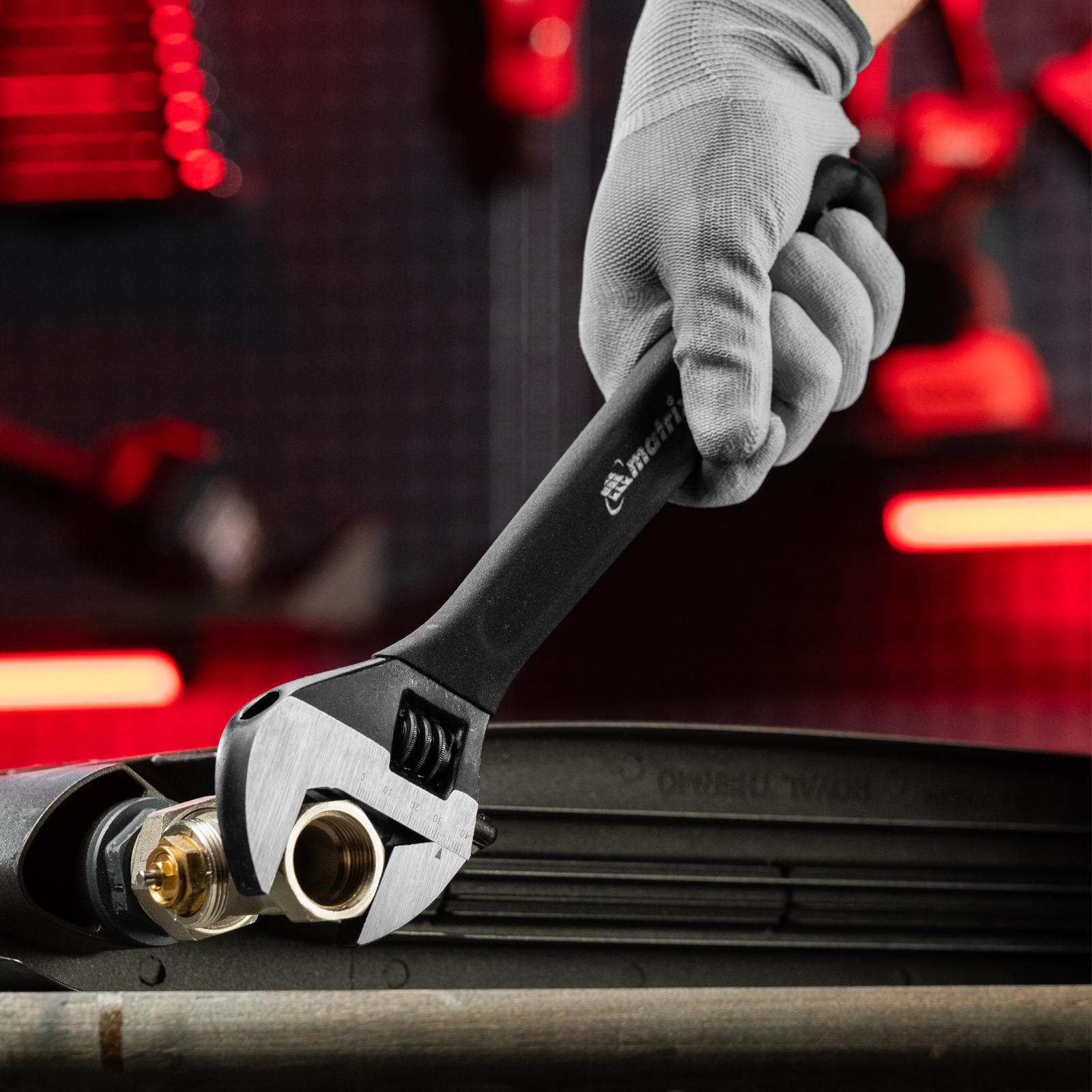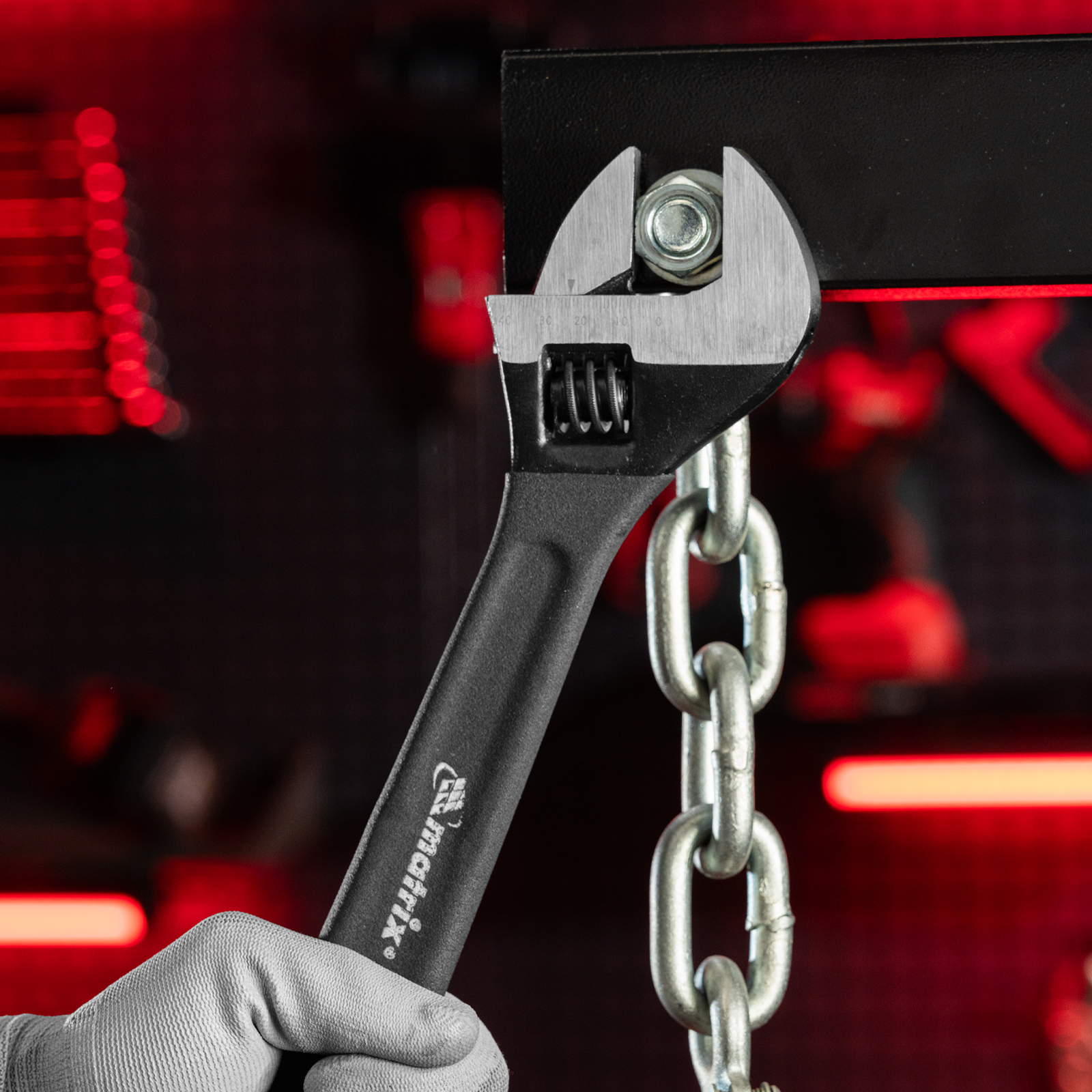 Разводной ключ Matrix 15507 длиной 300 мм используется для монтажа и демонтажа крепежных элементов. Заменяет собой целый комплект обычных гаечных ключей. Губки можно разводить на точно заданное расстояние, что позволяет захватывать детали различного размера. Разводной ключ пригодится для проведения слесарных, сантехнических, ремонтных работ.
