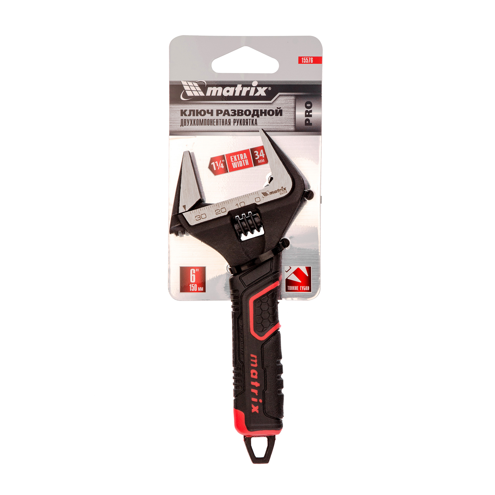 Ключ разводной, тонкие губки, фосфатированный, двухкомпонентная рукоятка, 150 мм, PRO Matrix в Краснодаре