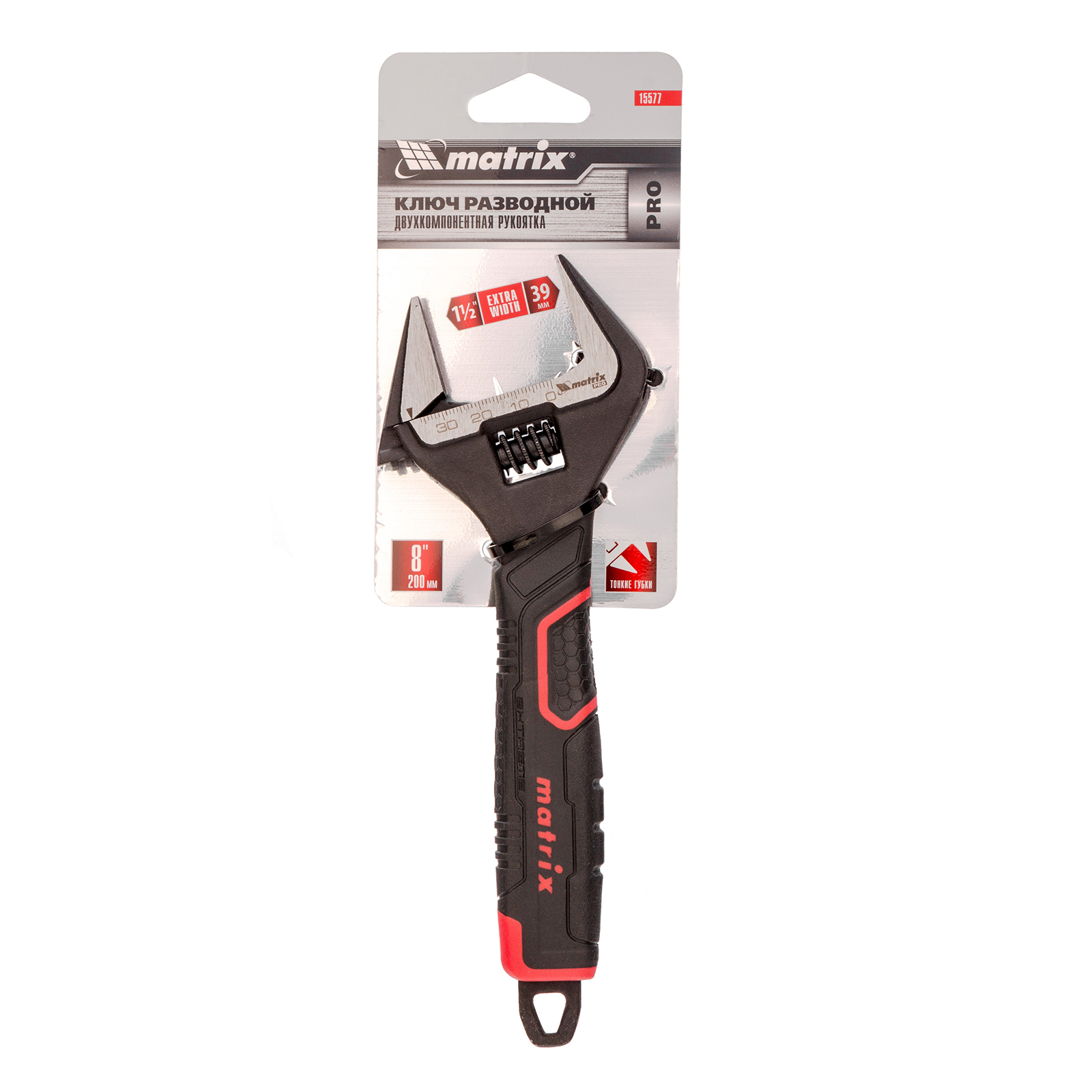 Ключ разводной, тонкие губки, фосфатированный, двухкомпонентная рукоятка, 200 мм, PRO Matrix в Краснодаре