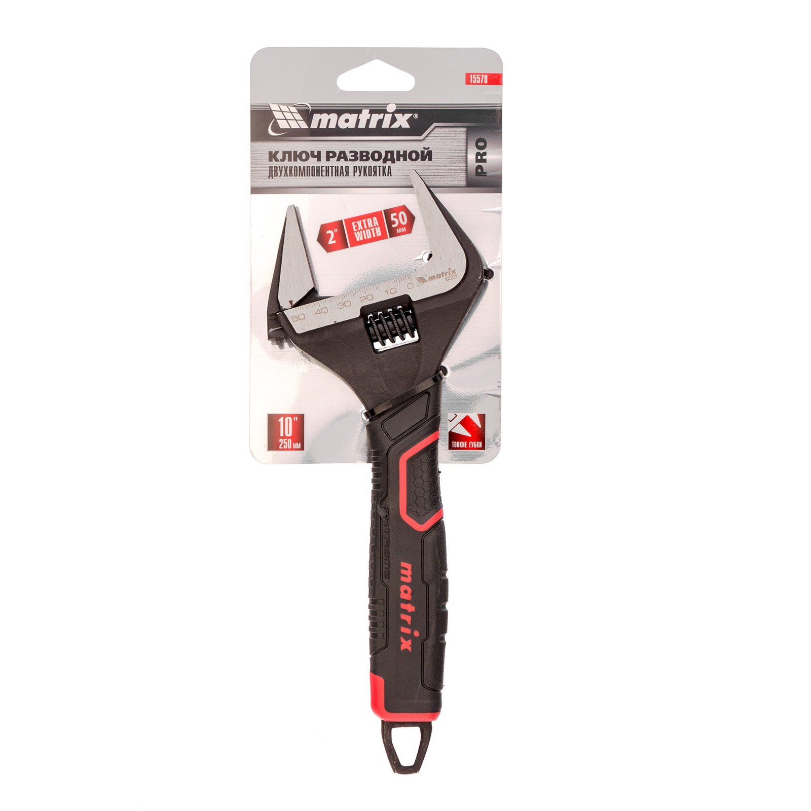 Ключ разводной, тонкие губки, фосфатированный, двухкомпонентная рукоятка, 250 мм, PRO Matrix в Краснодаре