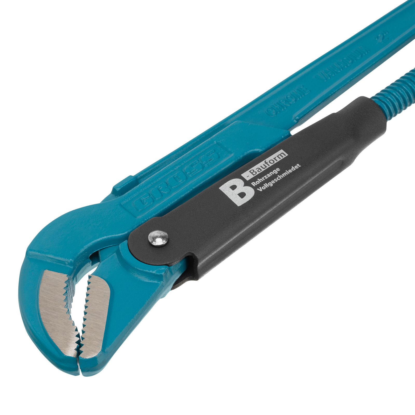 - Высокая прочность — цельнокованый корпус изготовлен из хромованадиевой стали, а губки закалены до твердости 57-60 HRC.