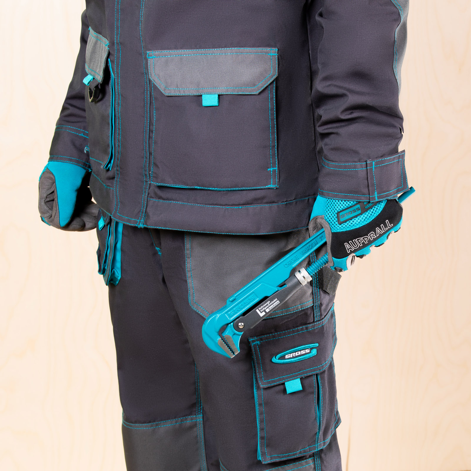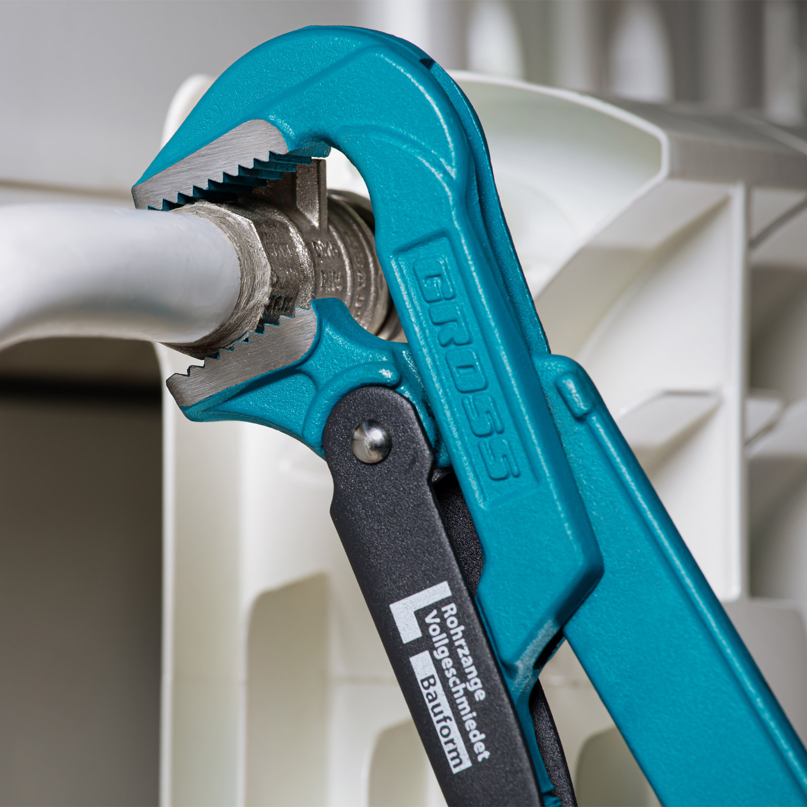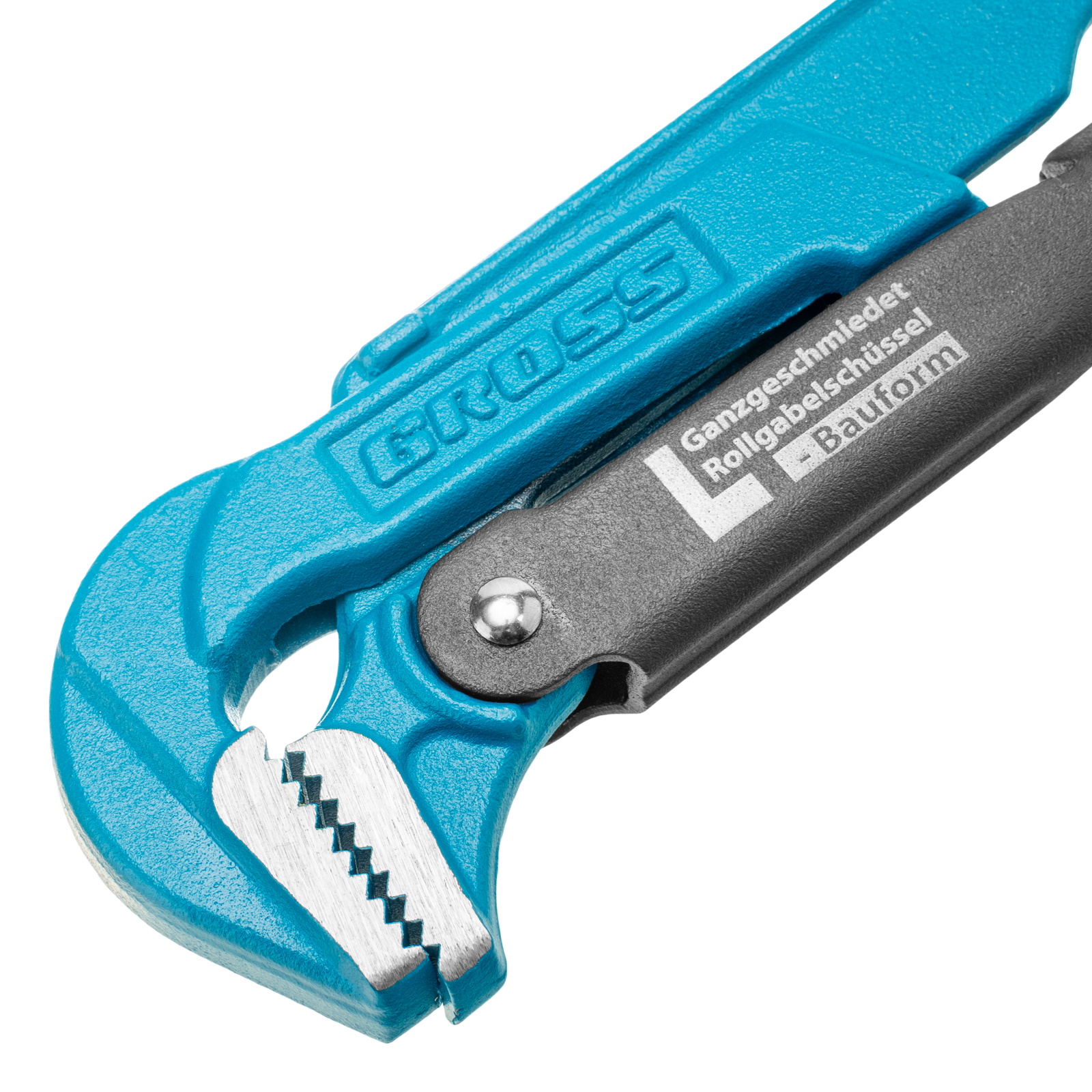 - Самоблокируемый захват труб и деталей — зубья прогрессивной формы наклонены против направления вращения.