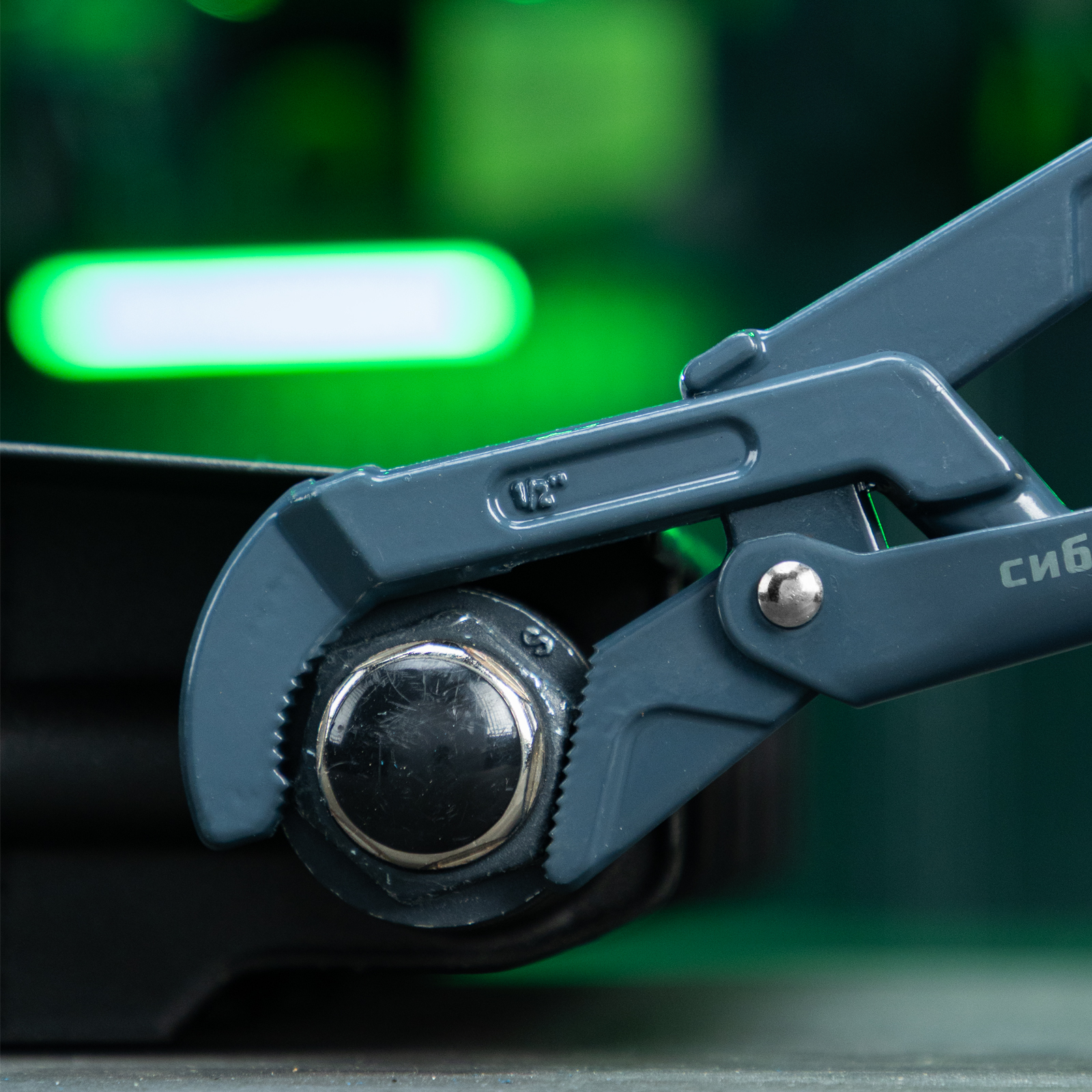 - Прочность и долговечность — кованая конструкция из закаленной легированной стали обеспечивает высокий рабочий ресурс, губки закалены до твердости 48-52 HRC.