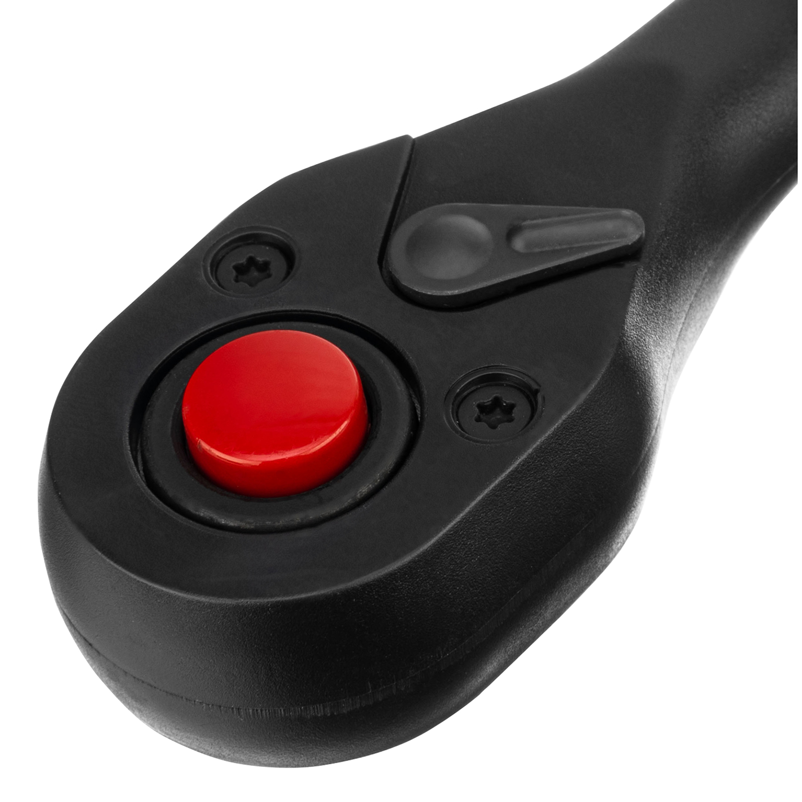 Ключ-трещотка Matrix 14090 с 72-зубым храповым механизмом, из стали CrV, с присоединительным квадратом 1/2" и быстрым сбросом, с 2-компонентной рукояткой, позволяет быстро и плавно монтировать и демонтировать резьбовые соединения при помощи торцевых головок различного размера. Храповой механизм с 72 зубцами и шагом 5° облегчает работу в стесненных условиях. Ключ будет полезен в автосервисе, слесарной мастерской, а также дома, на даче или в гараже.