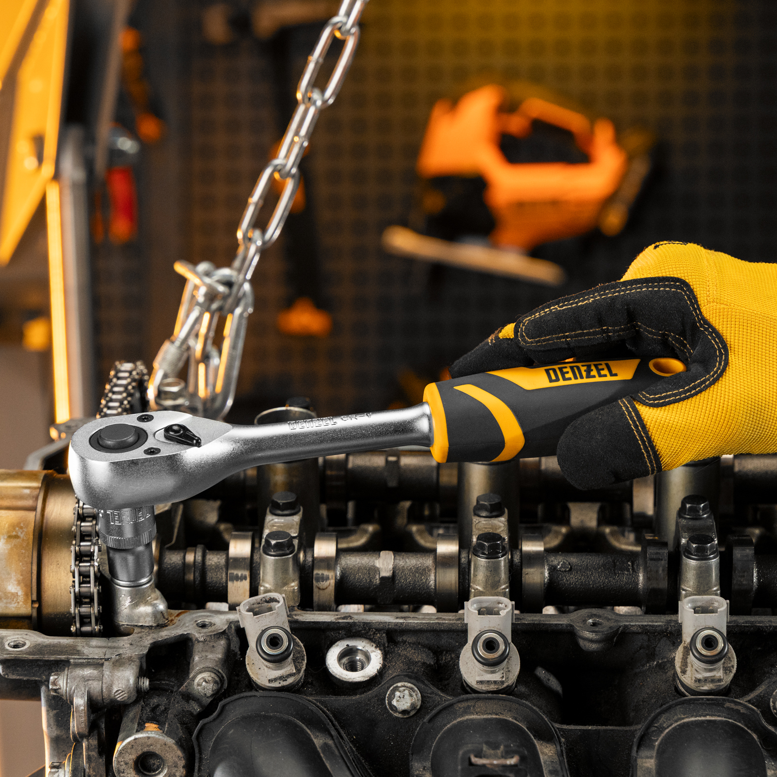 Ключ-трещотка Denzel 14033 из стали CrV, с присоединительным квадратом 1/2", с быстрым сбросом и храповым механизмом с 90 зубьями, предназначен для установки торцевых головок, а также адаптеров и удлинителей с посадочным размером соответствующего размера. Угол поворота трещотки составляет всего 4°, что упрощает работу в труднодоступных местах. Инструмент будет полезен в сервисном центре, на СТО, а также пригодится дома или в поездке.