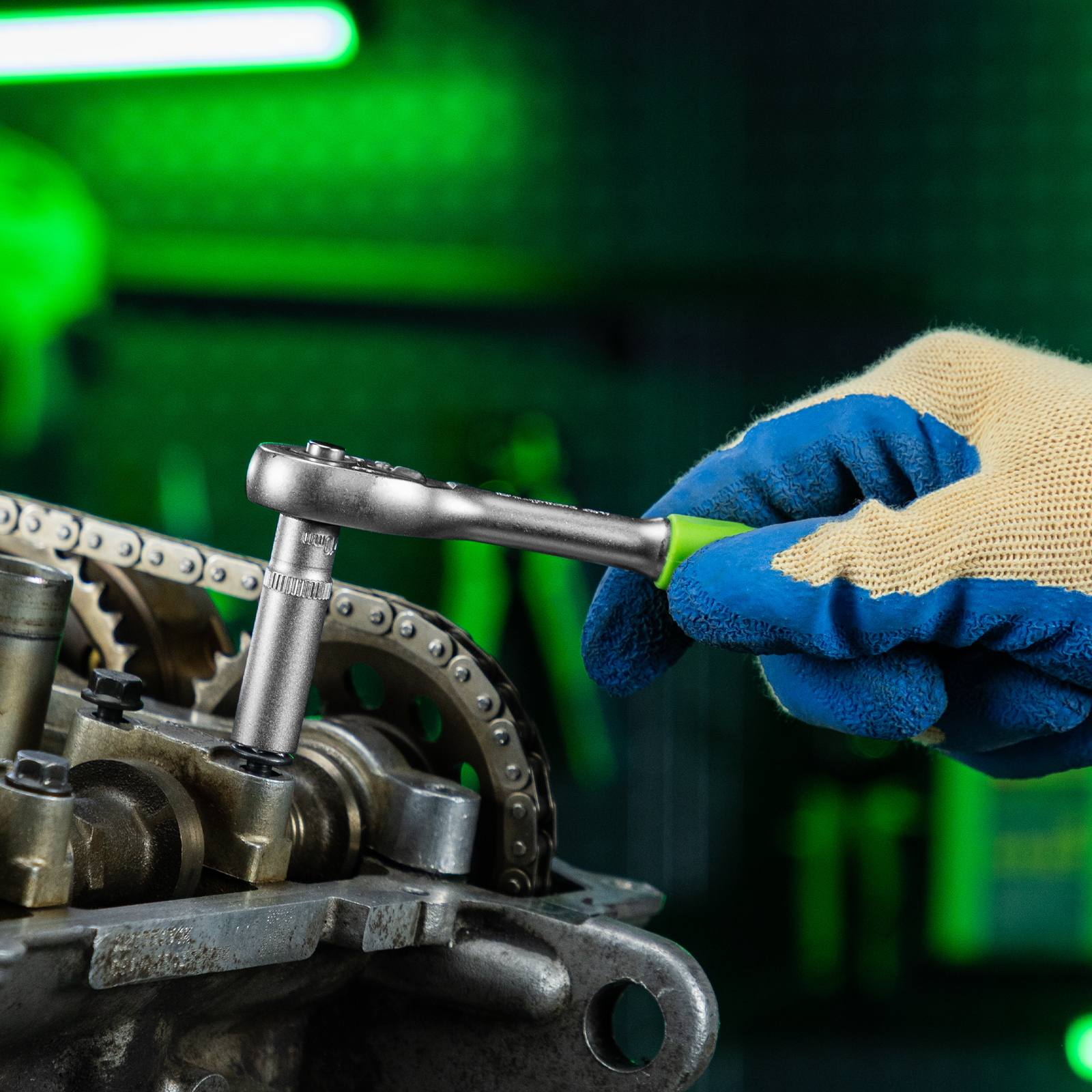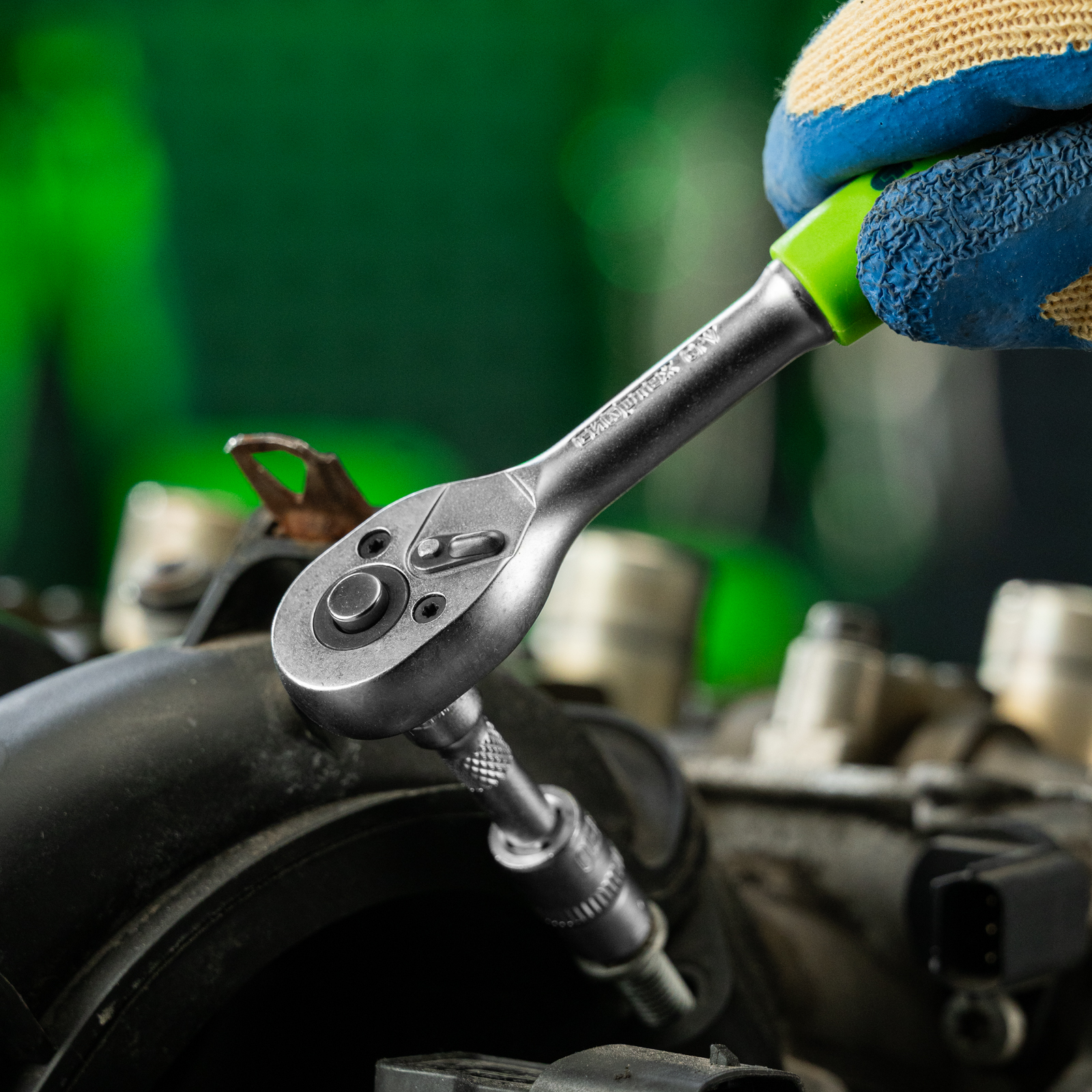 - Простая установка и замена насадки — механизм быстрого сброса позволяет моментально снимать торцевую головку.
