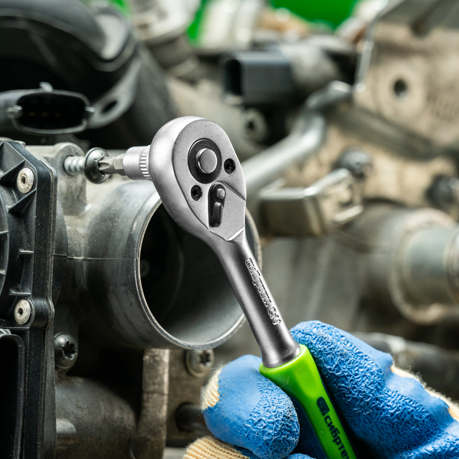 Ключ-трещотка 1/4", 45 зубьев, с быстрым сбросом, матовый хром Сибртех в Краснодаре