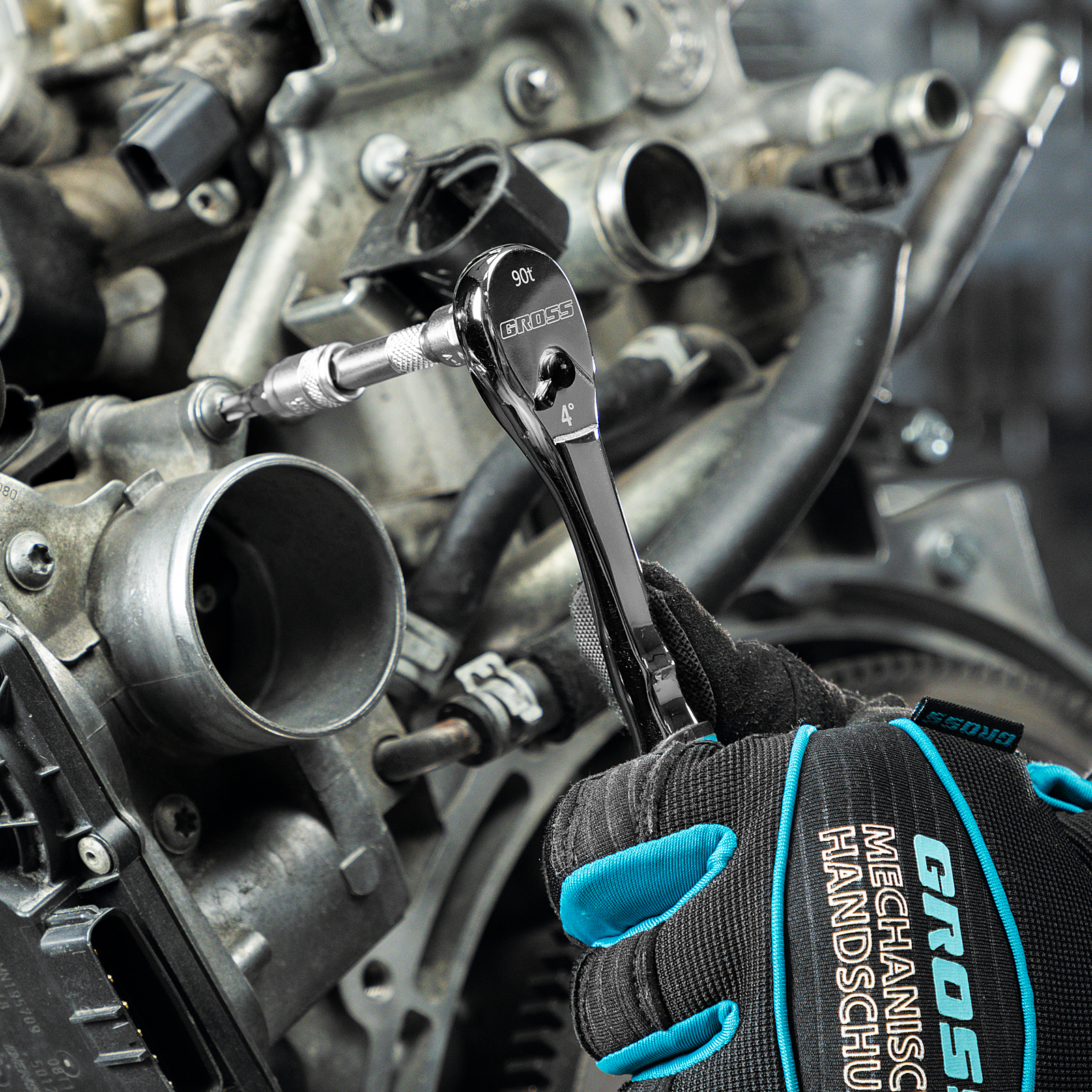 Ключ-трещотка 1/4", CrV, 90 зубьев, усиленный, хром Gross в Краснодаре