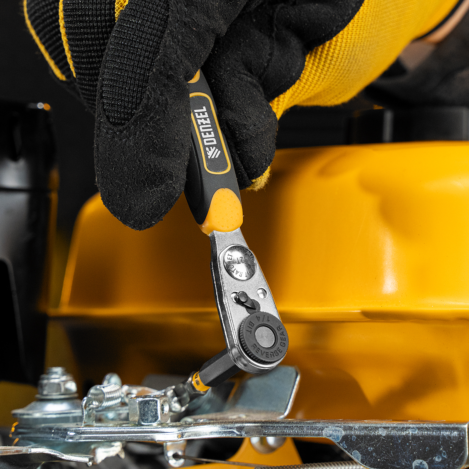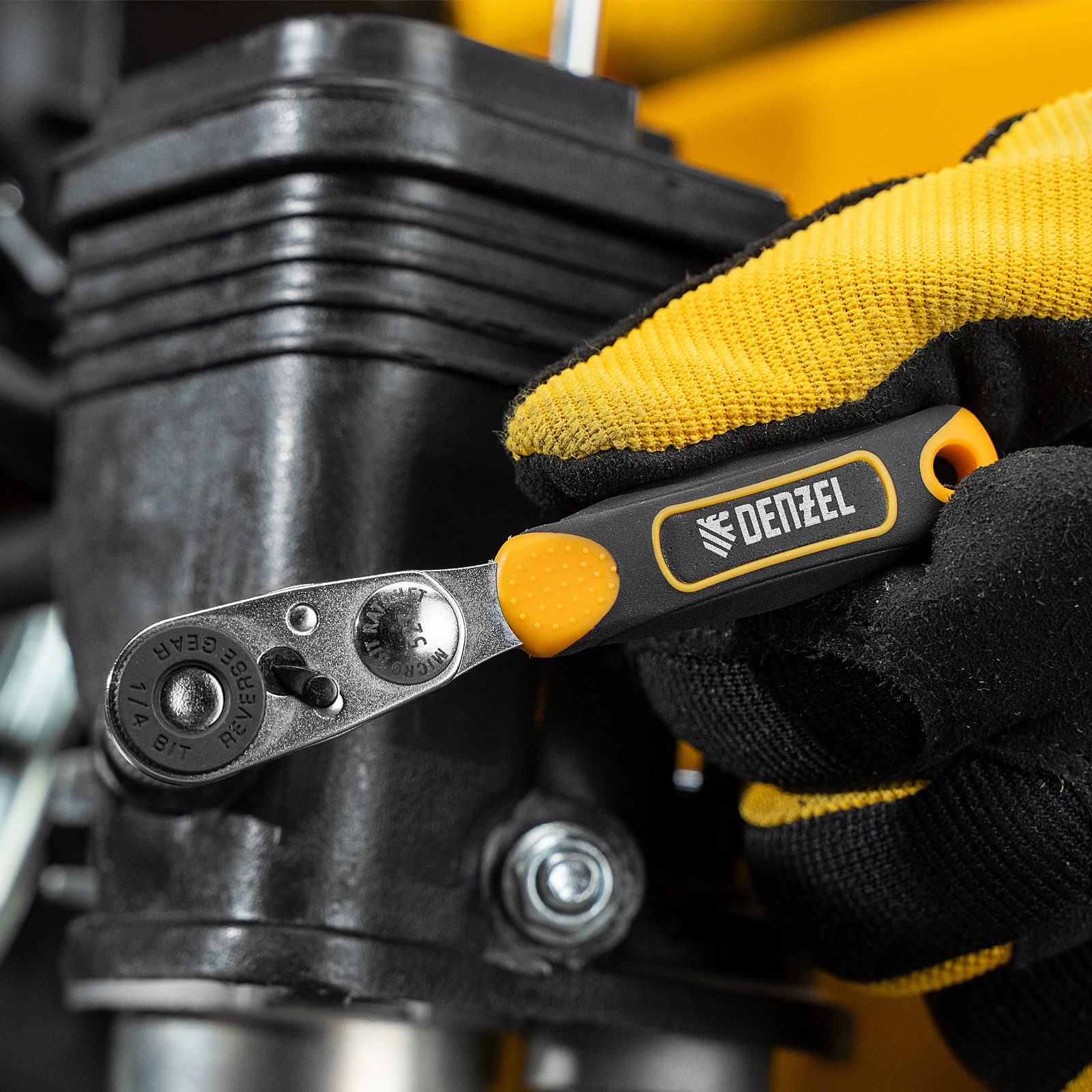 Ключ-трещотка для бит 1/4", 52 зуба, CrMo, адаптер для торцевых головок Denzel в Краснодаре