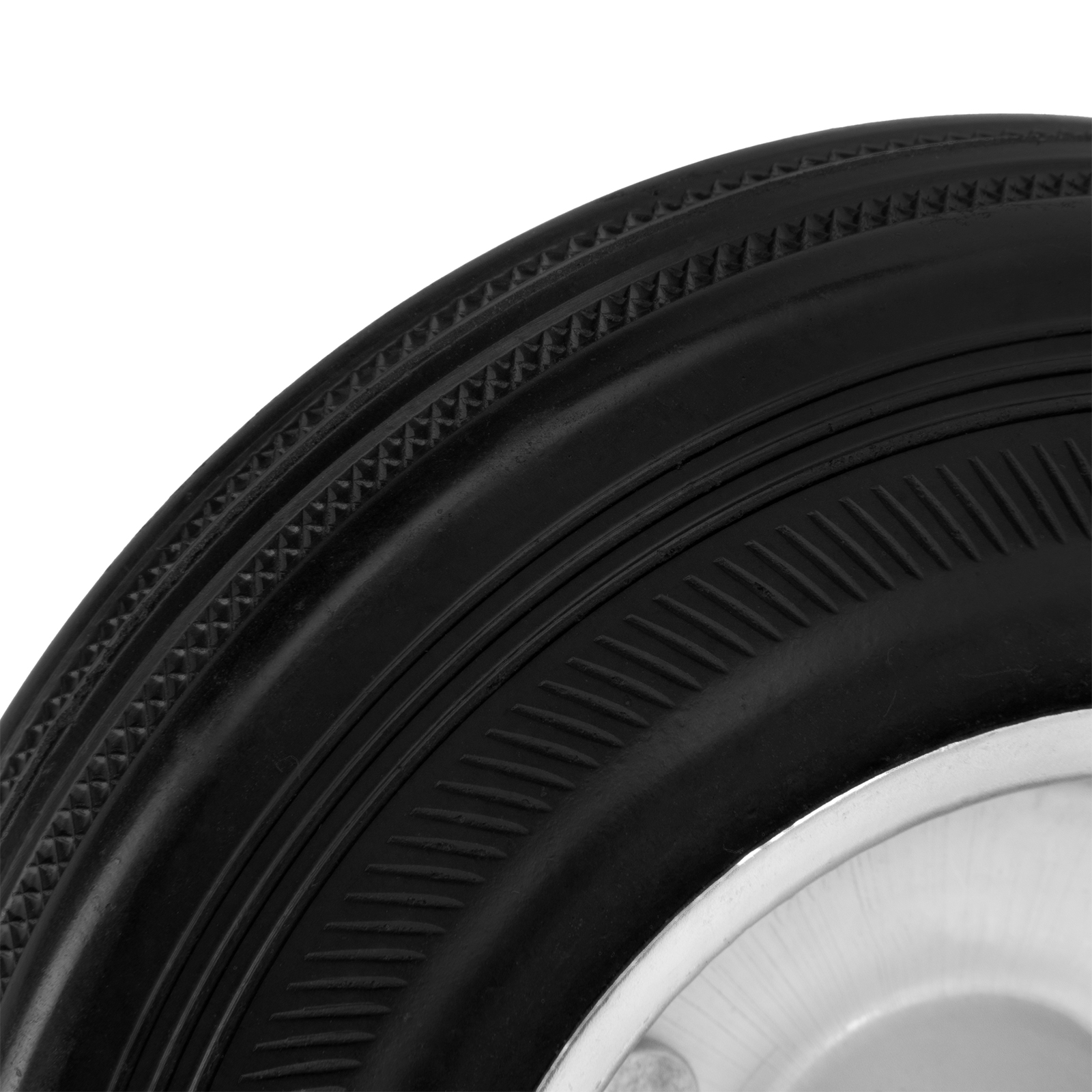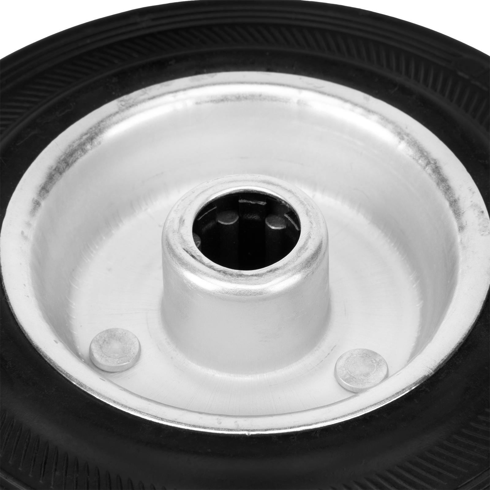 - Универсальность — контактная поверхность выполнена из прочной резины, поэтому колесо может применяться на различных покрытиях, долгое время сохраняя рабочие качества.