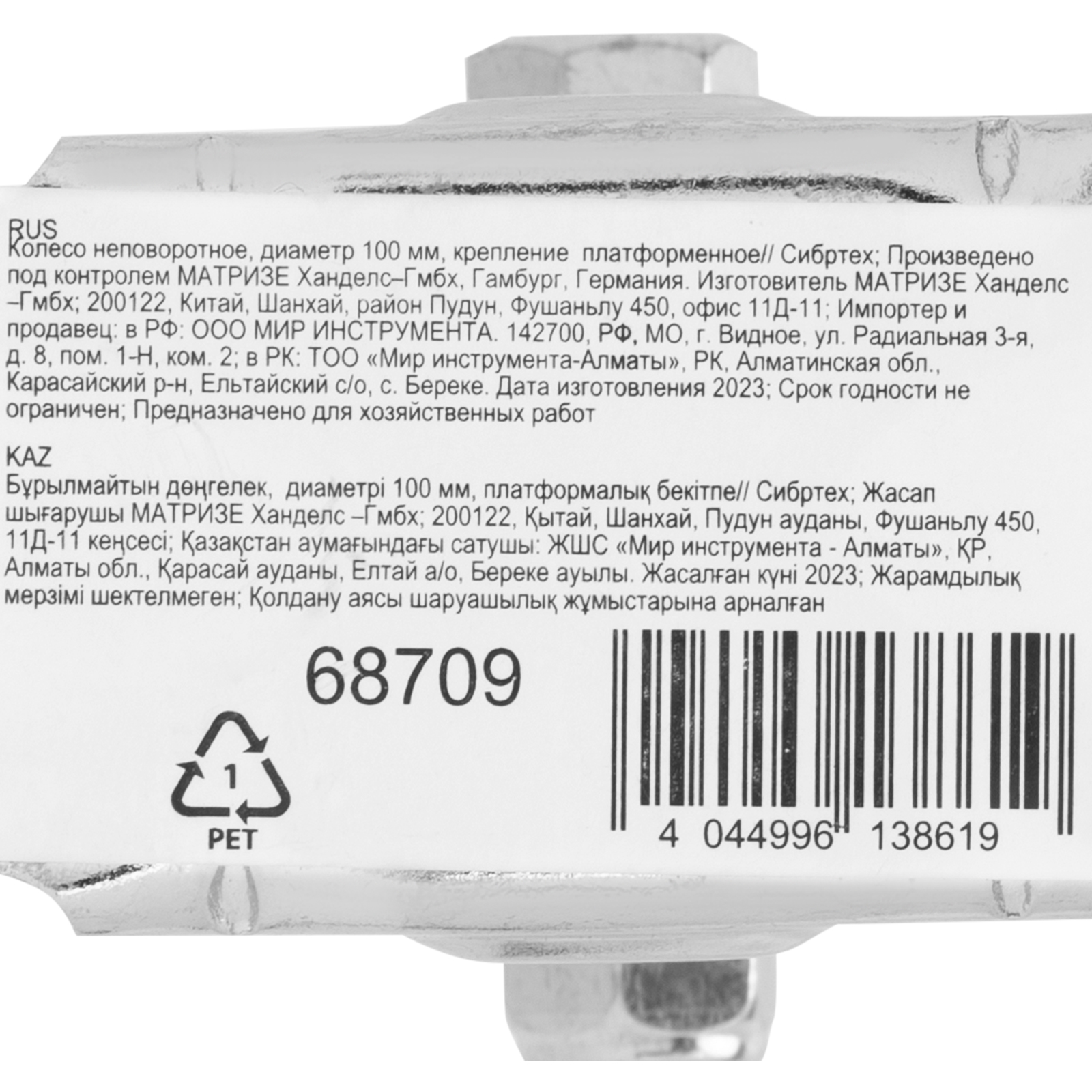 Колесо неповоротное D 100 мм, крепление платформенное Сибртех в Краснодаре