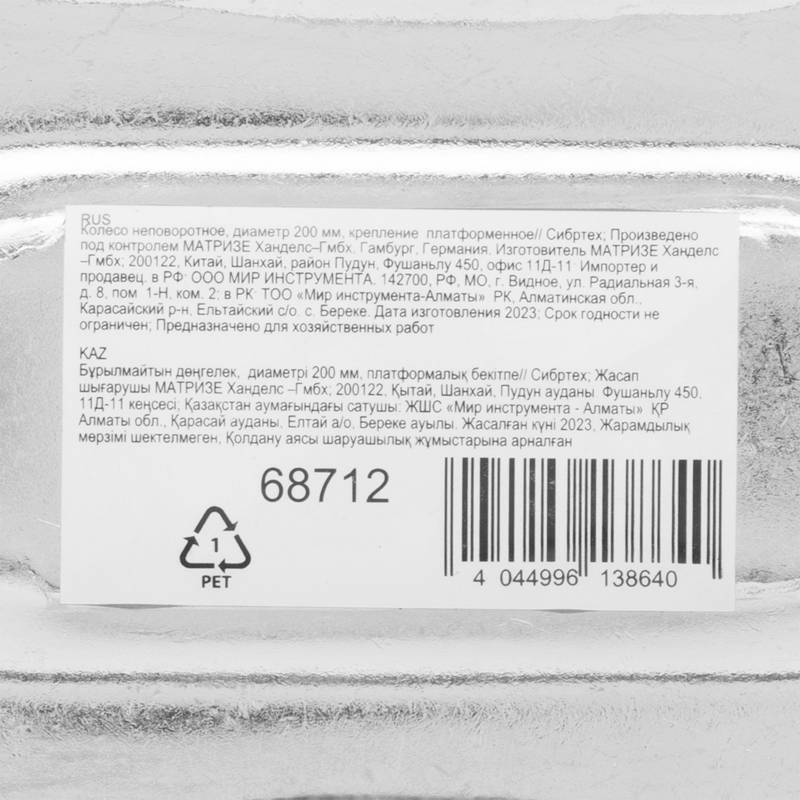 Колесо неповоротное D 200 мм, крепление платформенное Сибртех в Краснодаре
