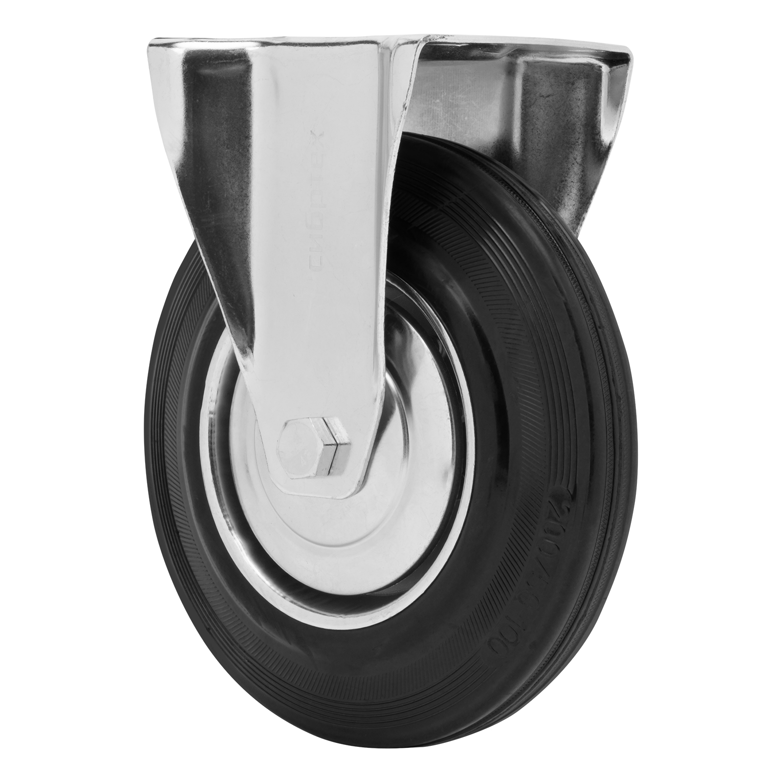 Колесо неповоротное Сибртех 68712 диаметром 200 мм, с платформенным креплением, обладает грузоподъемностью 165 кг и устанавливается на ручные тележки. Благодаря шине из прочной резины не повреждает поверхность и не издает шума при движении. Колесо служит для перемещения грузов по прямолинейной траектории в производственных и складских помещениях, а также под открытым небом.