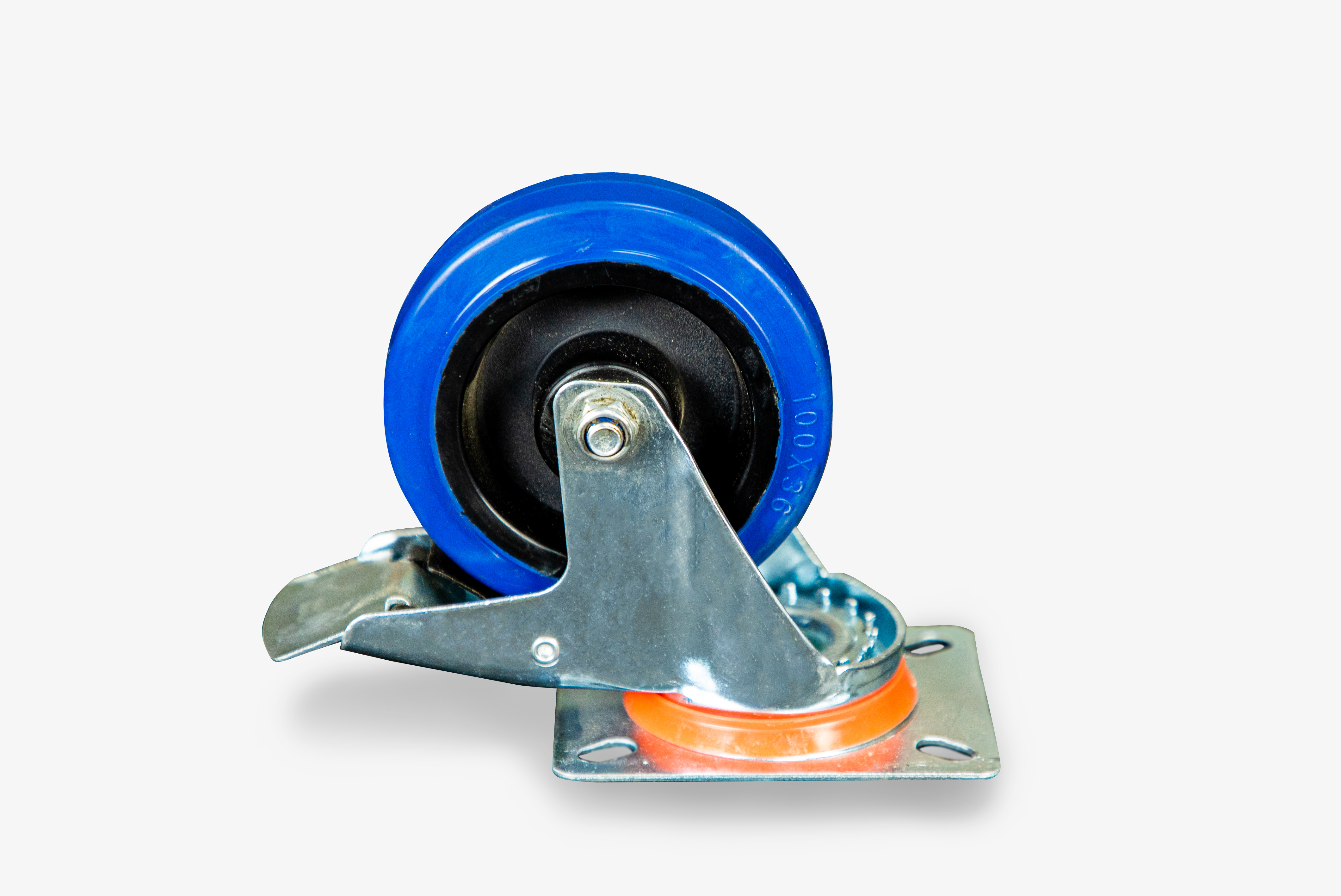 Колесо поворотное из эластичной резины MW70 100 мм с тормозом в Краснодаре